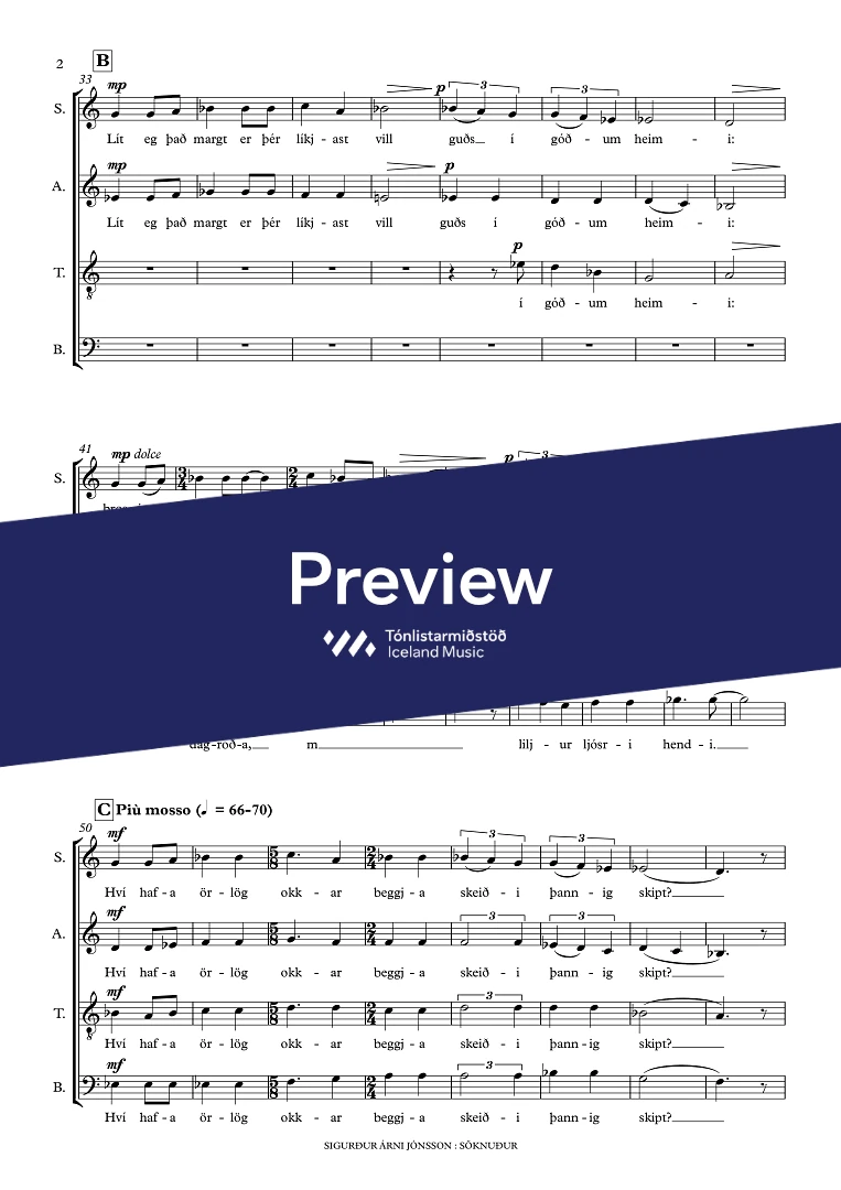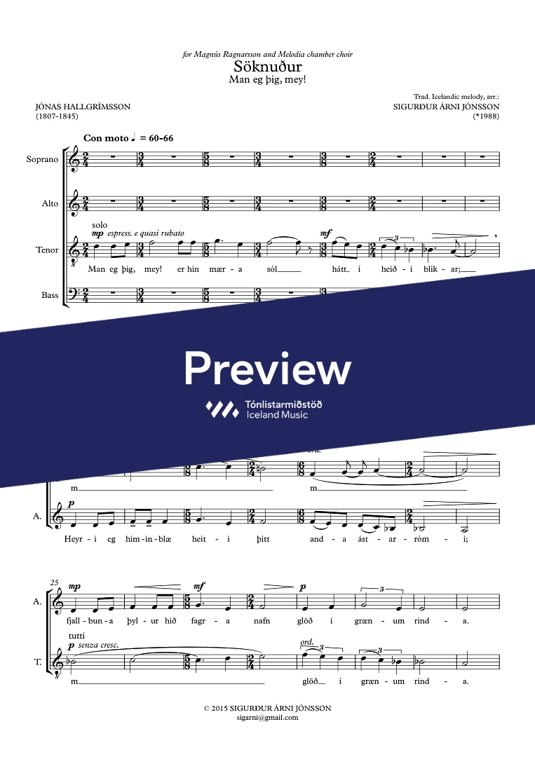 Arranged for choir (SATB) for Magnús Ragnarsson and Melodia Chamber Choir