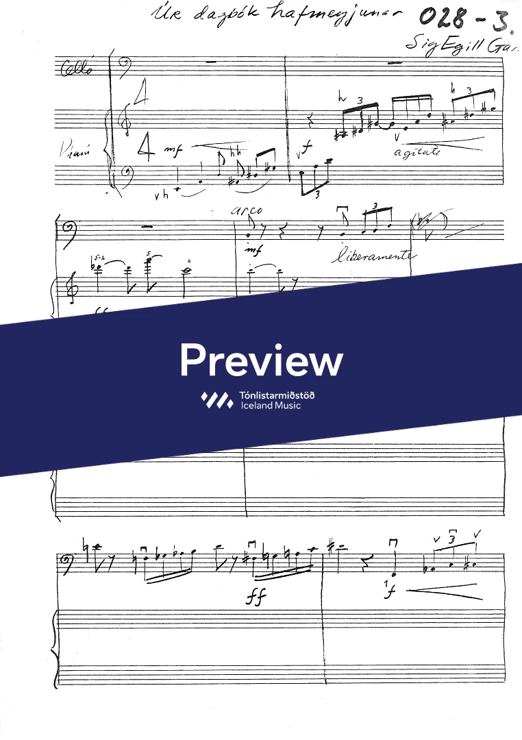 Composer Sigurður Egill Garðarsson Year composed1978 Categories Chamber works InstrumentationPiano, Cello Catalogue no.028-003 ISMN-