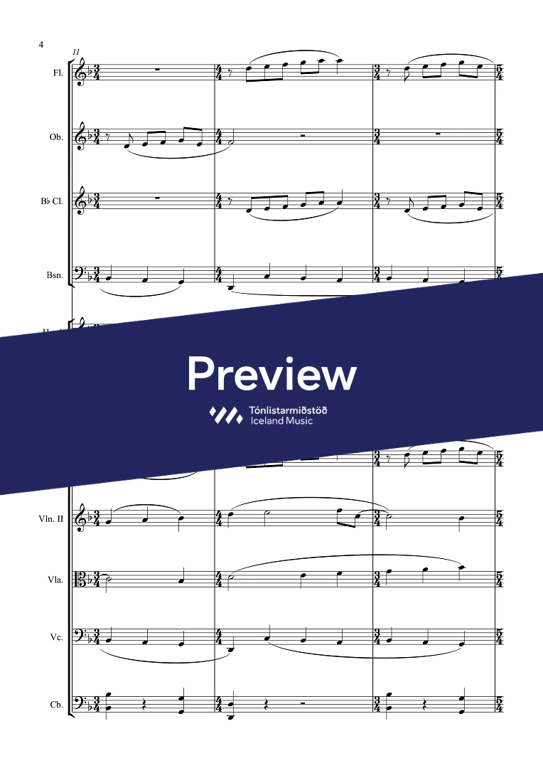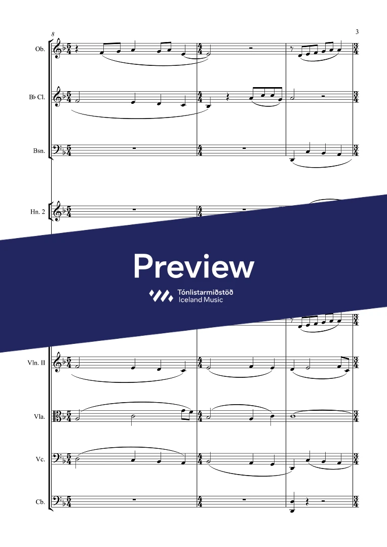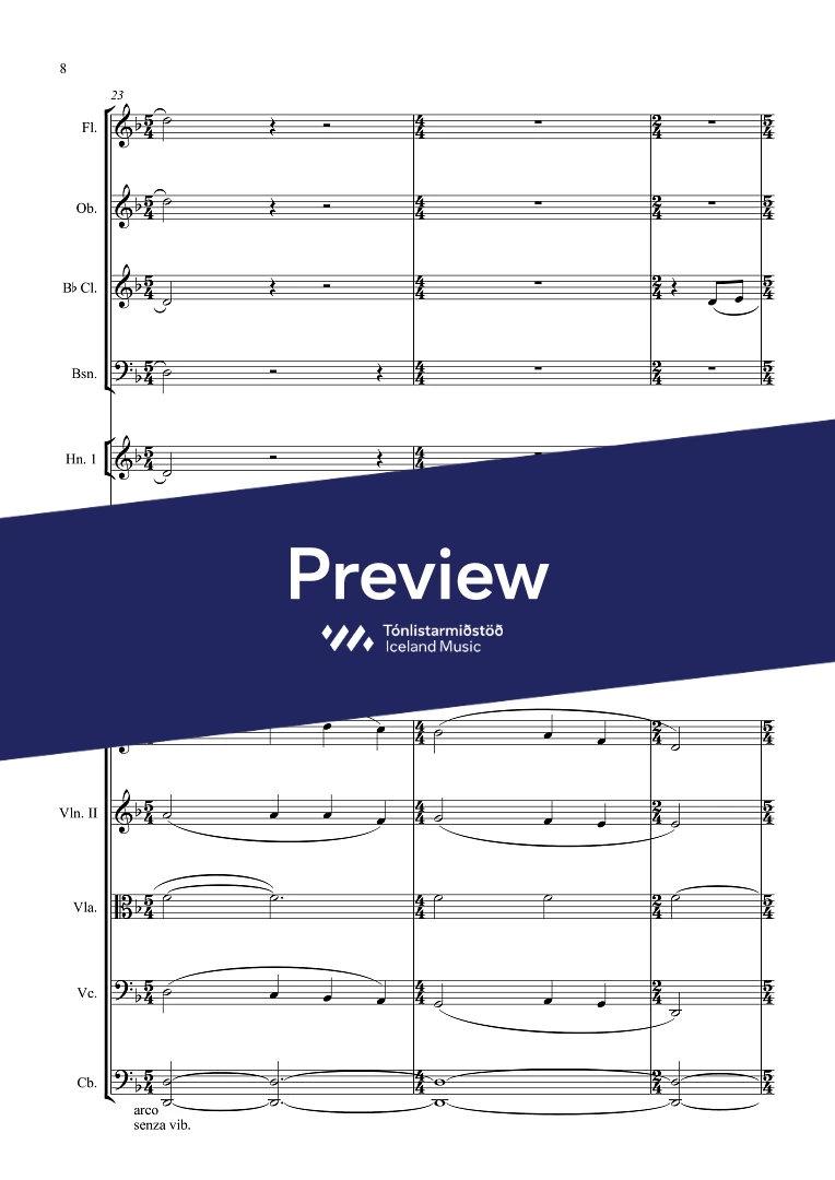 Instrumentation 1,1,1,1 - 2,0,0,0 - perc. - sop., bar. - SATB - str.