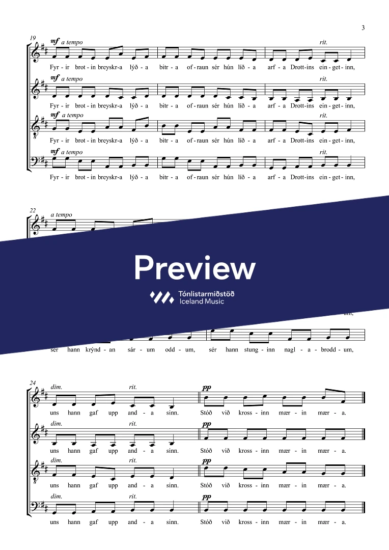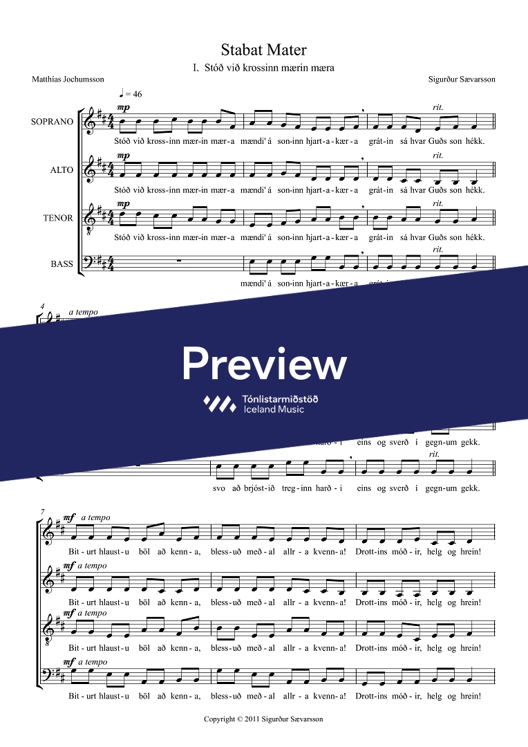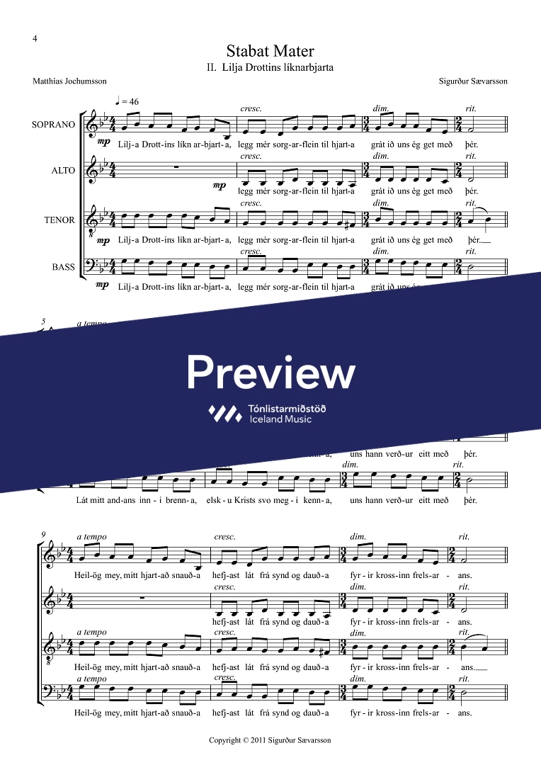 SATB (two versions available, Icelandic or Latin texts)