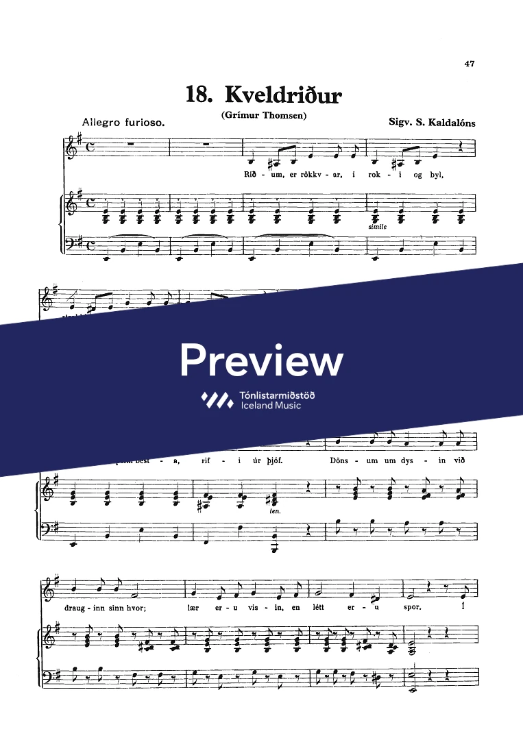 Text sampleRíðum, er rökkvar, í roki og byl,