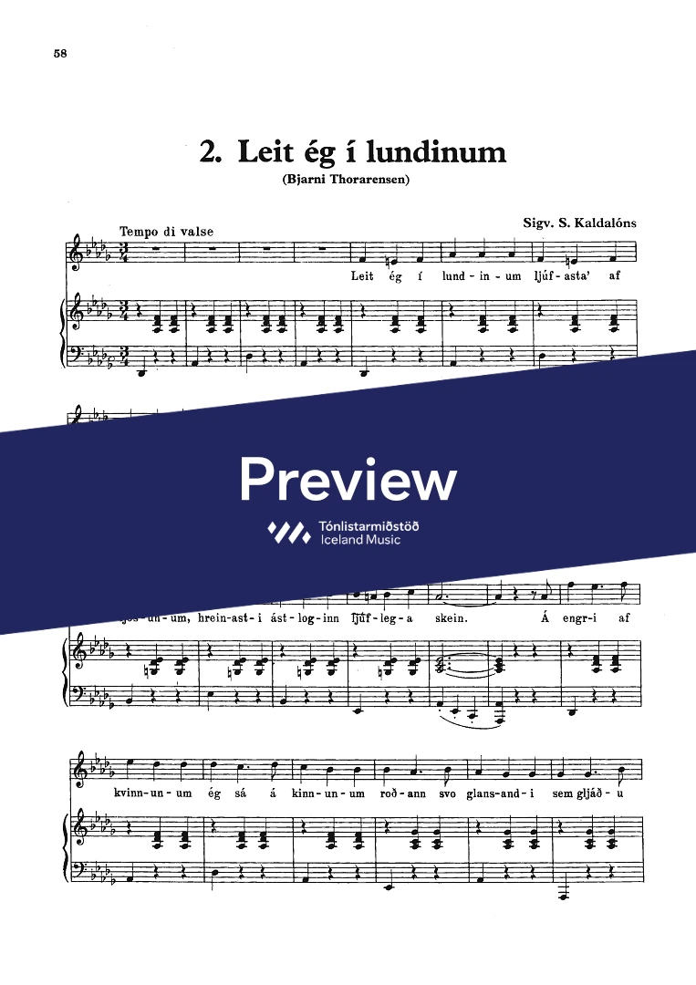 Text sampleLeit ég í lundinum ljúfasta´af sprundunum