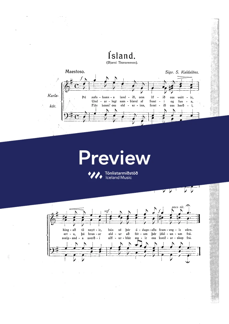 Text sampleÞú nafnkunna landið, sem lífið oss veittir