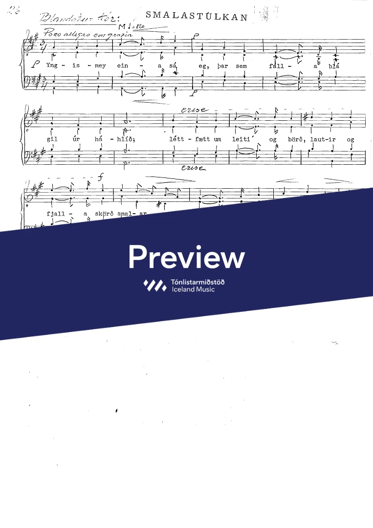 Text sampleYngismey eina sá ég, þar sem falla blá gil úr háhlíð