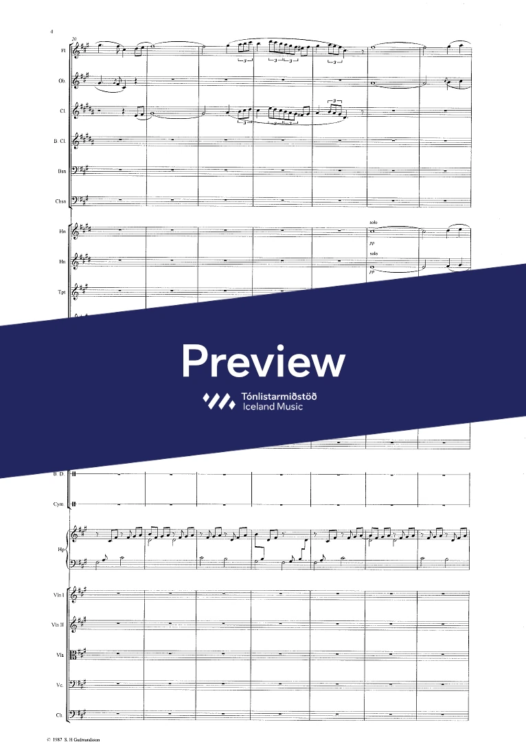 fl.ob.cl.Bcl.bsn.Cbsn. - 4hrn.4trp(in C, alt,ten,Bass)tuba - timp-Bdrum-perc.harp.glockensp.vib.tuned perc.cel. str.
