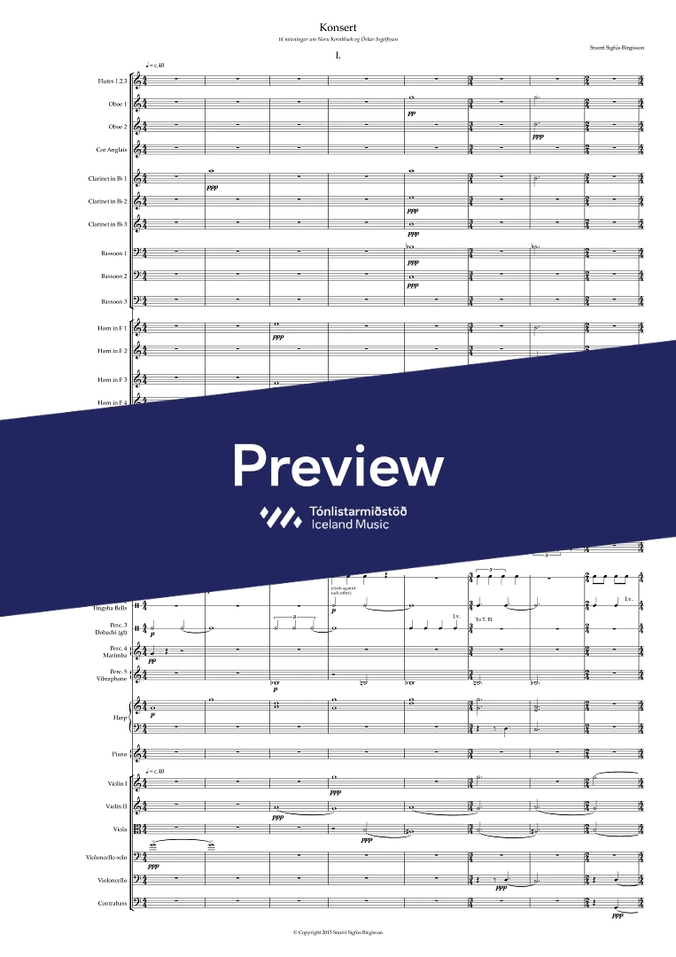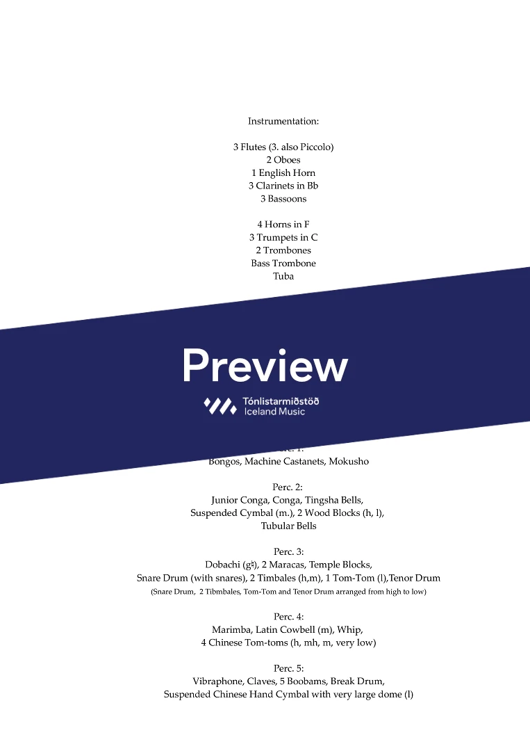 Price for score only. For hiring of performance materials, (after the premiere) please contact itm@mic.is