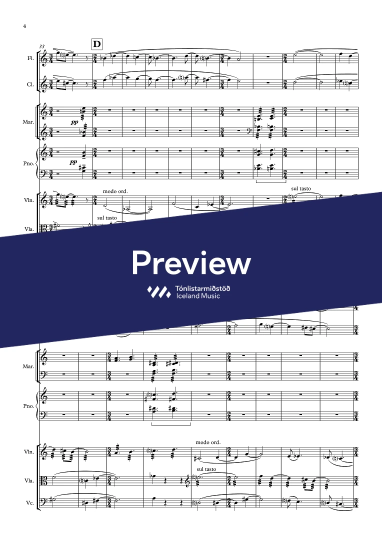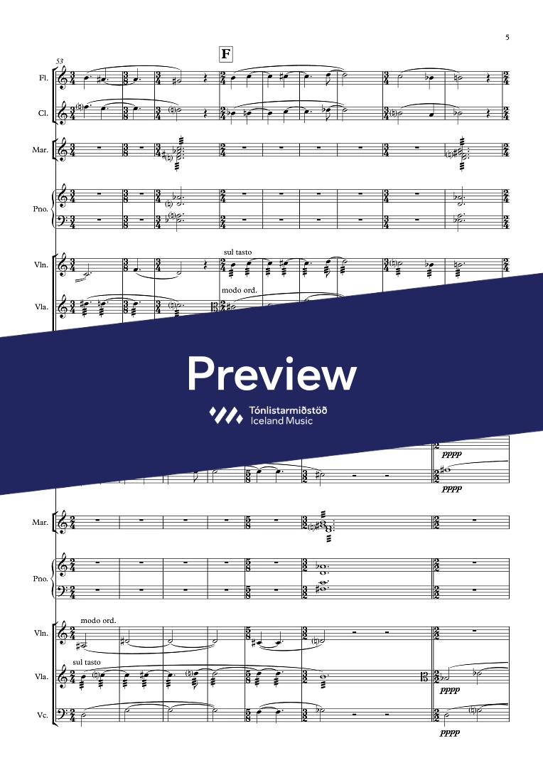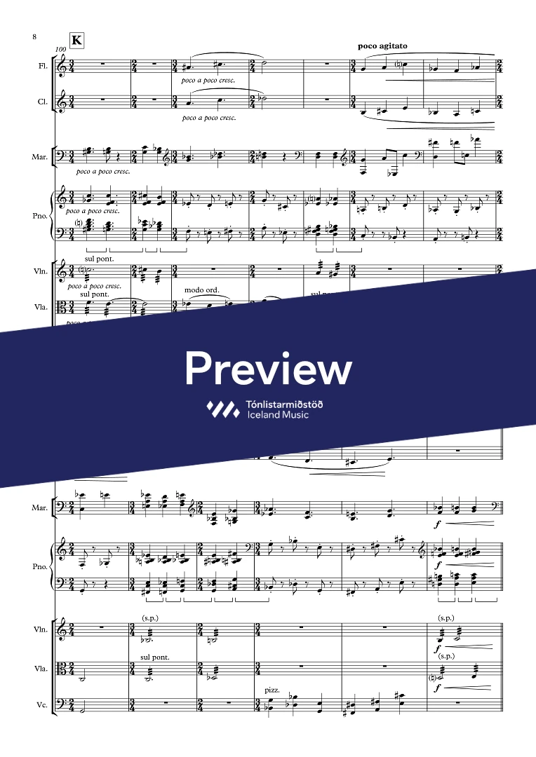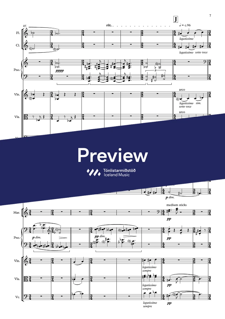 InstrumentationFlute, Clarinets, Percussion, Marimba, Piano, Violin, Viola, Cello