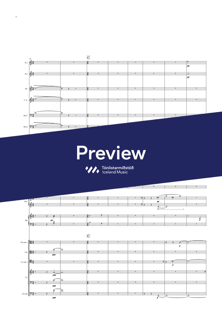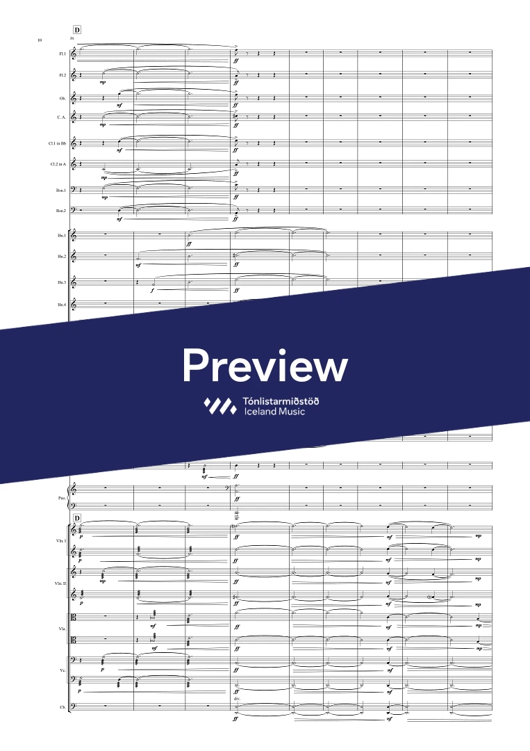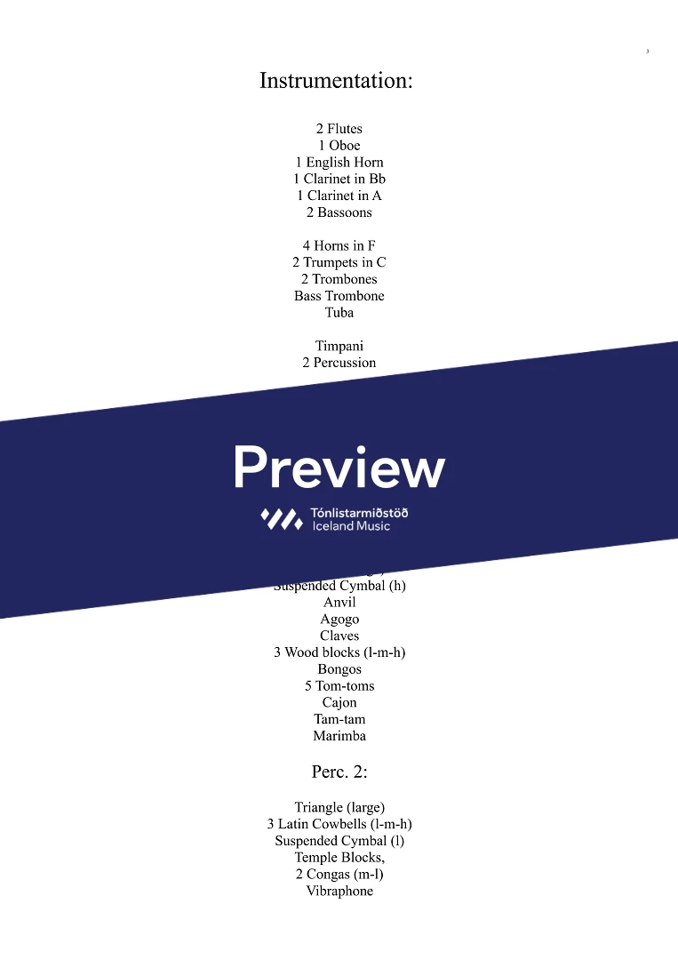 Instrumentation 2.2(C.A.).2.2. - 4.2.3.1. - timp - 2 perc - hp - pf - strings