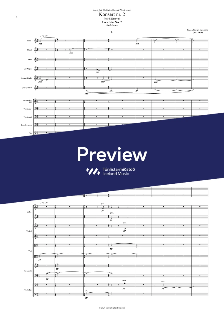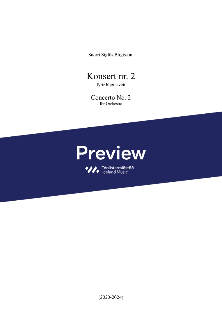 Concerto No. 2 for Orchestra was composed between 2020 and 2024 (with interruptions) for the North Iceland Symphony Orchestra at the orchestra's request. The work is in three movements.