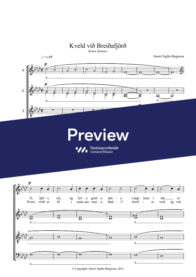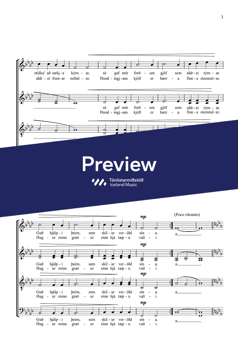 At the request of choir director, Þorgerður Ingólfsdóttir, the composer made this arrangement in 2010 for the choirs Hamrahlíðarkór and the Hamrahlíð School Choir. This version was premiered on 15 November 2010 in Reykjavík.