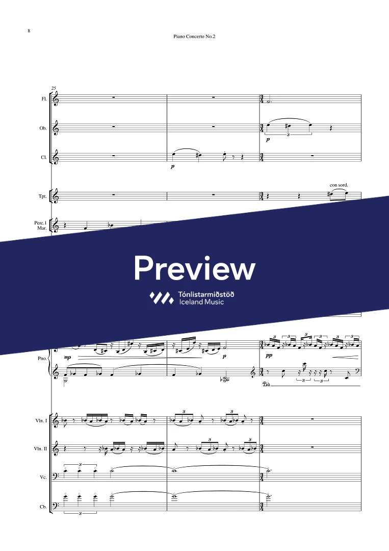 Fl.ob.cl.bsn.hrn.trp.trb.2perc.hrp.2vln.vla.vcl.db.solopno