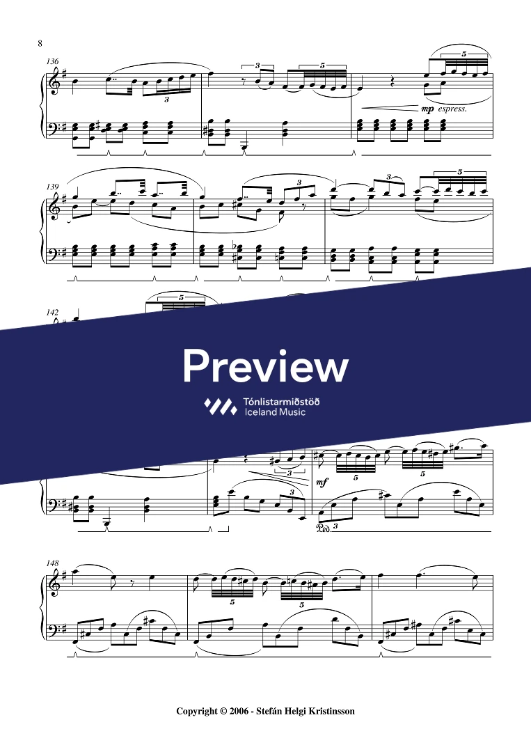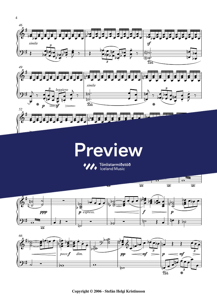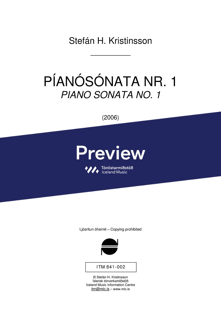 Composer Stefán Helgi Kristinsson Year composed2006 Categories Solo works InstrumentationPianoDuration19 minutes Catalogue no.841-002 ISMN-