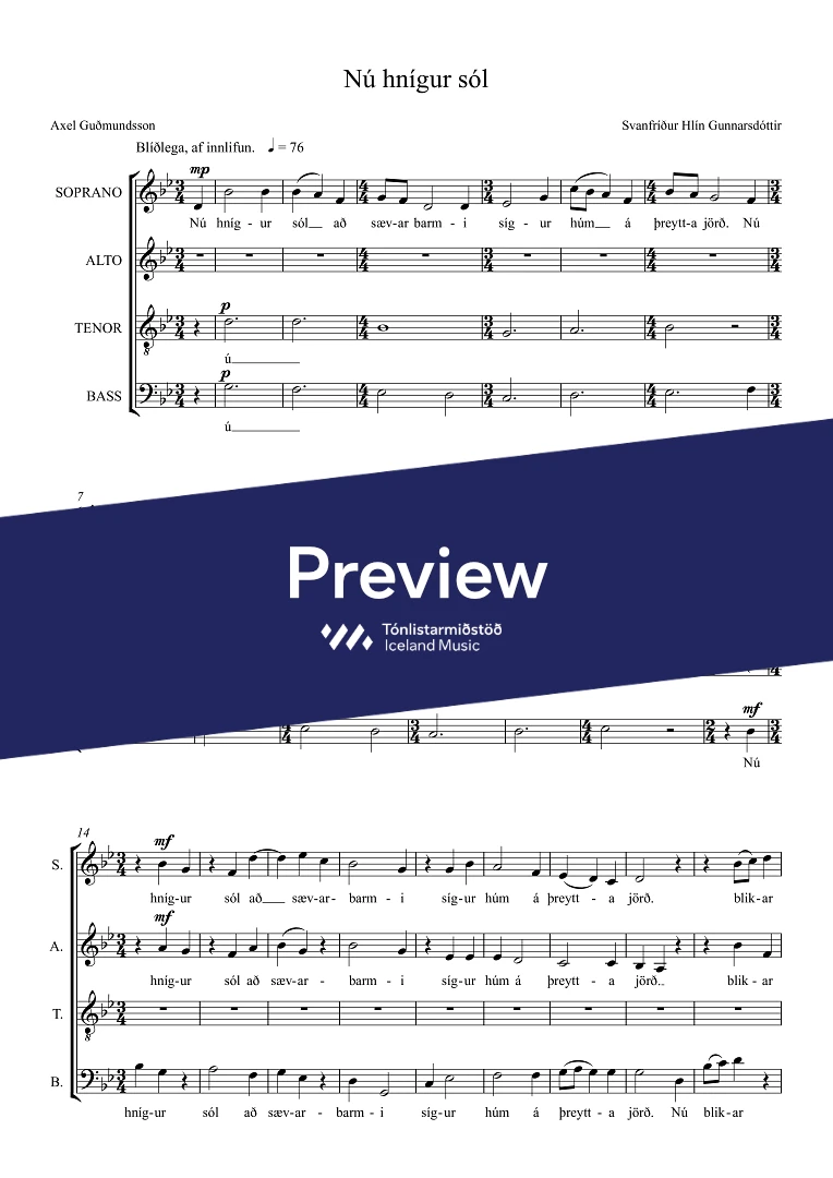 Text sampleNú hnígur sól að sævar barmi