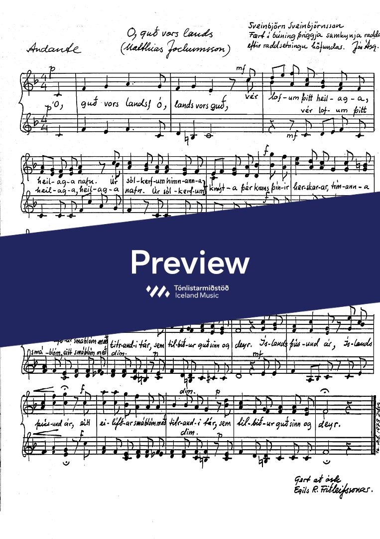 All downloads of the national anthem are free. Please contact itm@mic.is for printed versions.