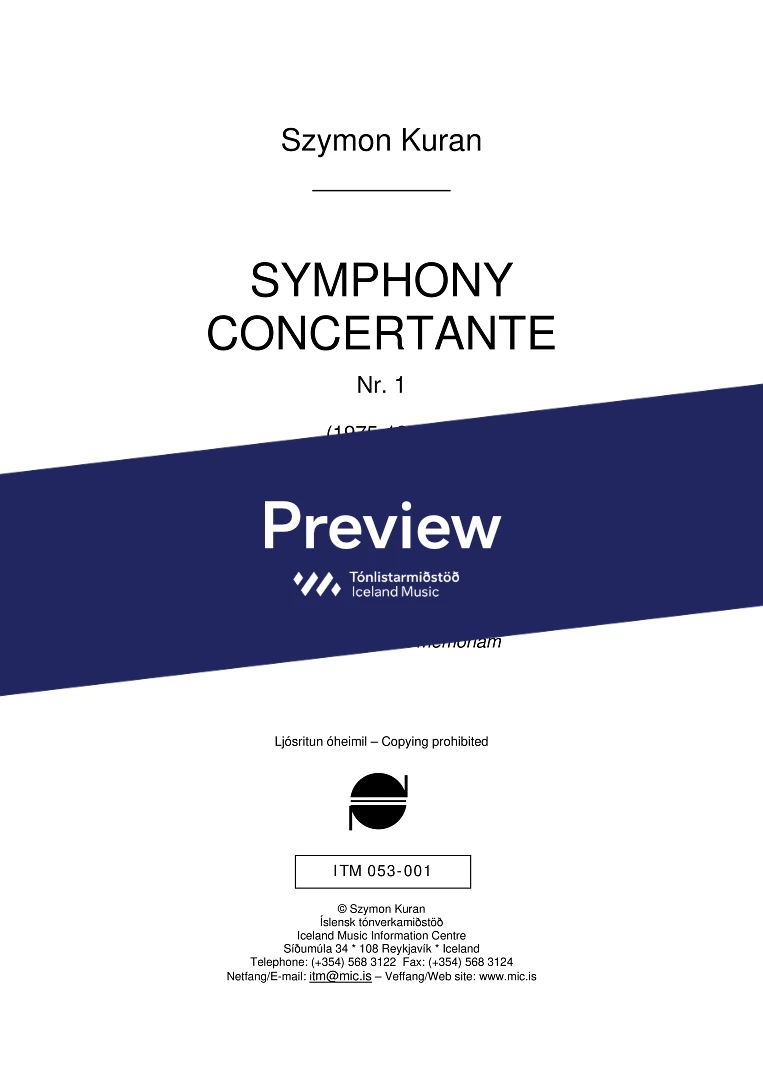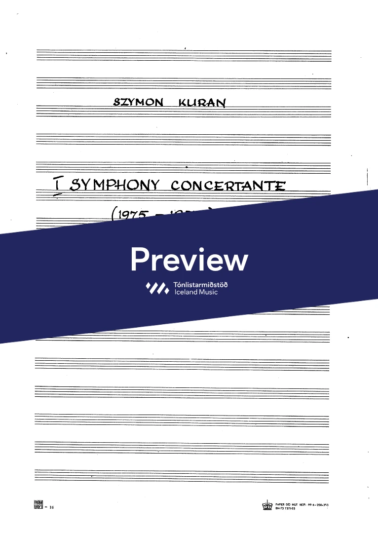 Composer Szymon Kuran Year composed1977 Categories Orchestra Instrumentation fl. 5tim. strings Catalogue no.053-001 ISMN-