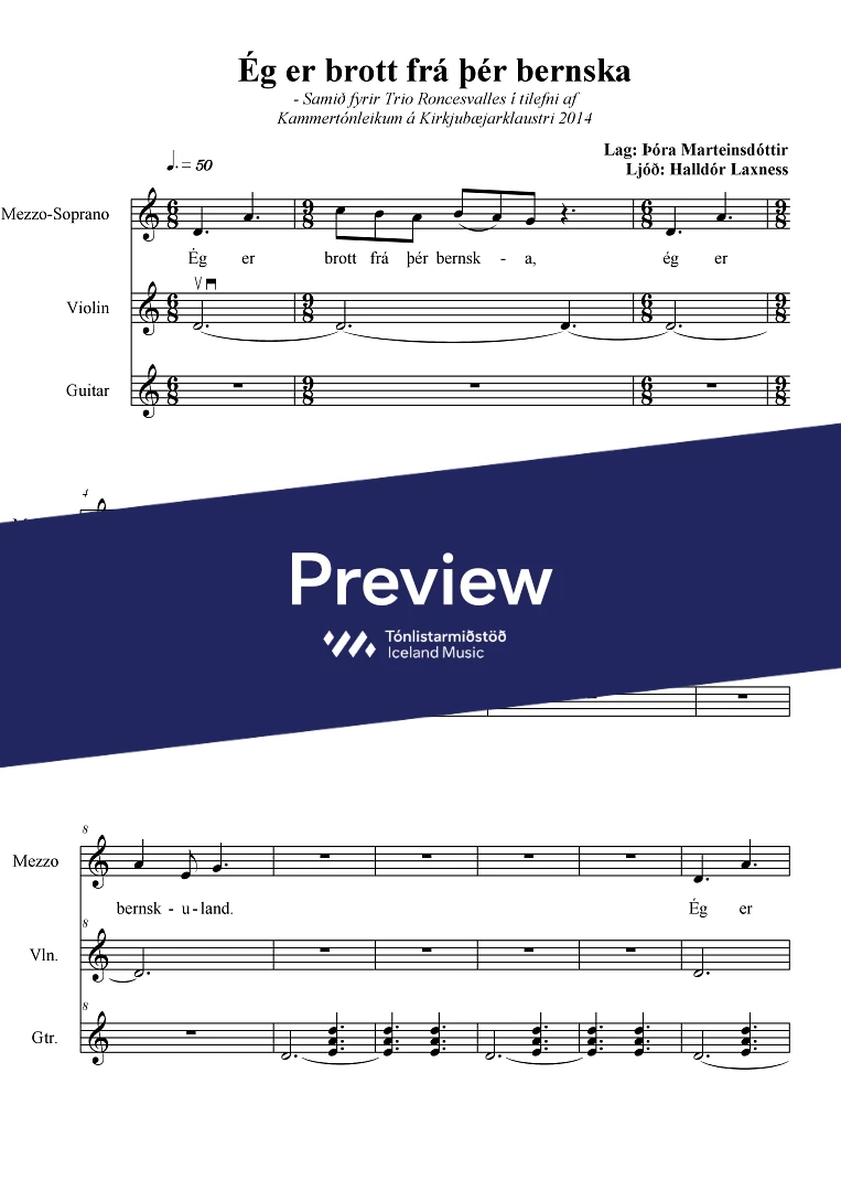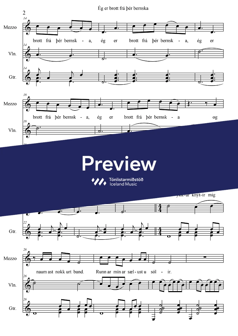 Text sampleÉg er brott frá þér bernska og bernskuland