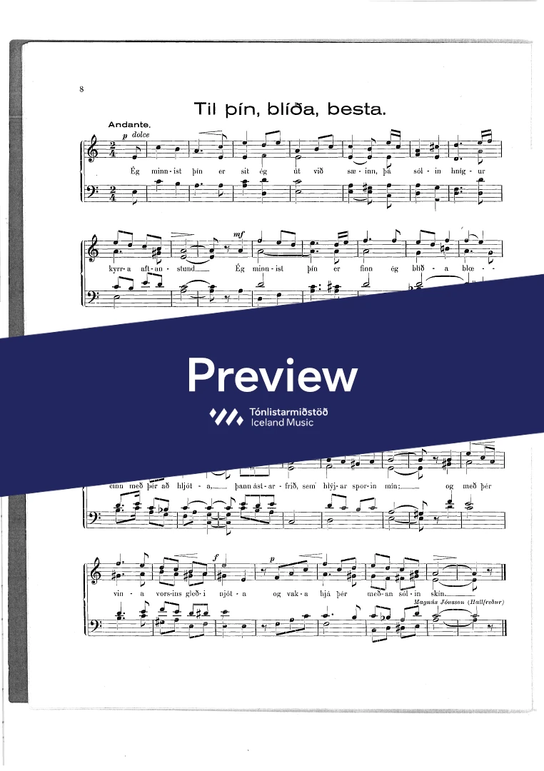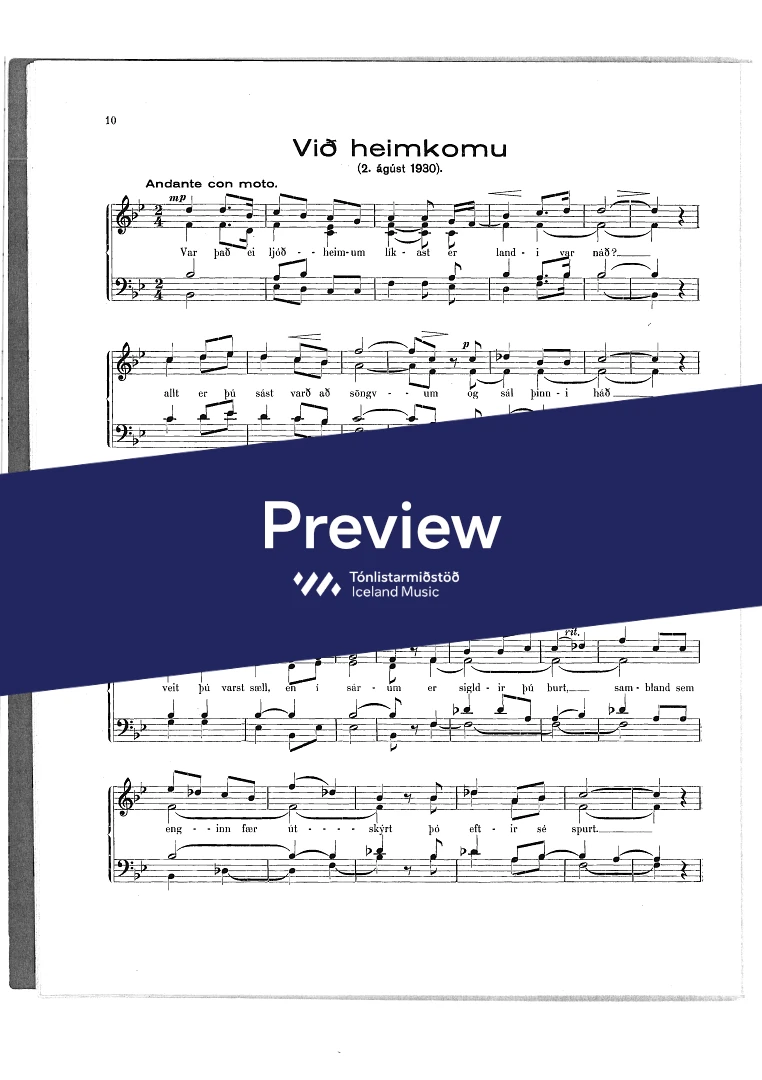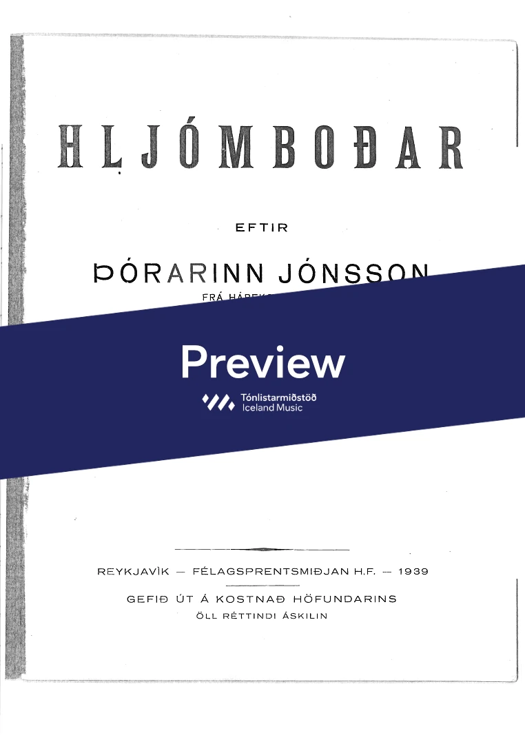 Composer Þórarinn Jónsson frá Háreksstöðum Year composed1940 Categories Vocal music InstrumentationPiano, Voice Catalogue no.408-903 ISMN-