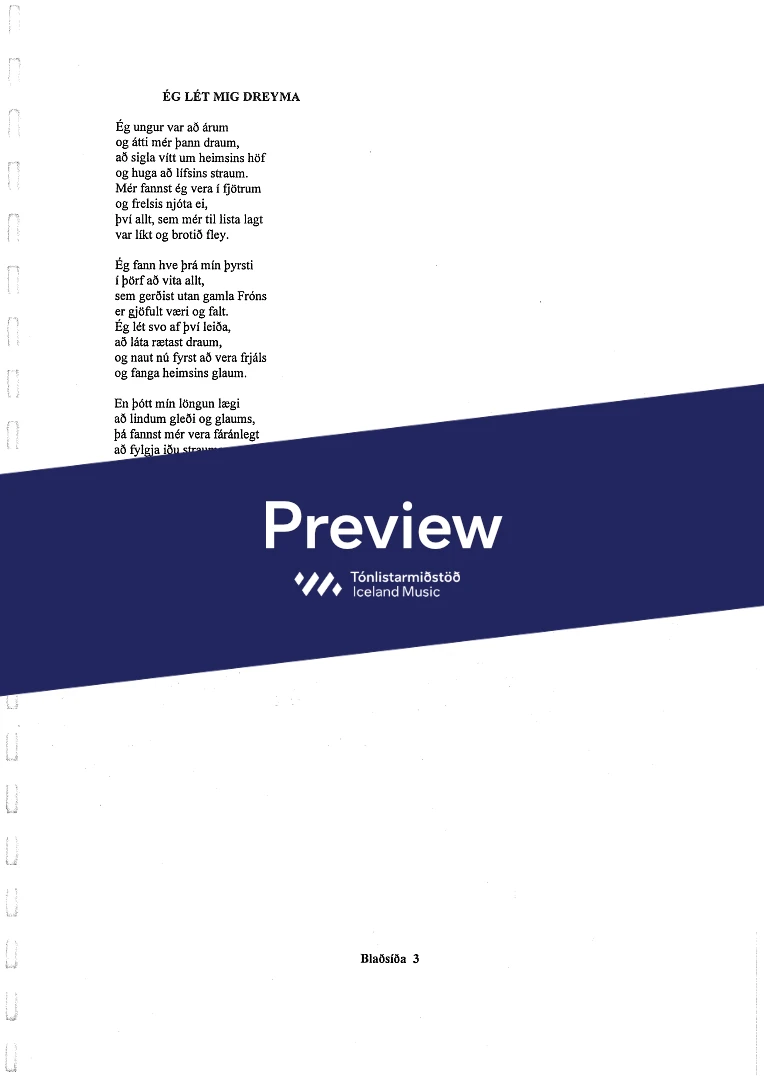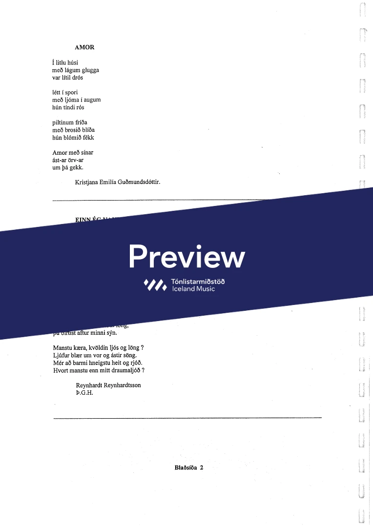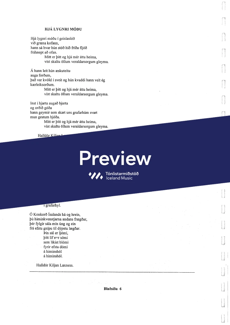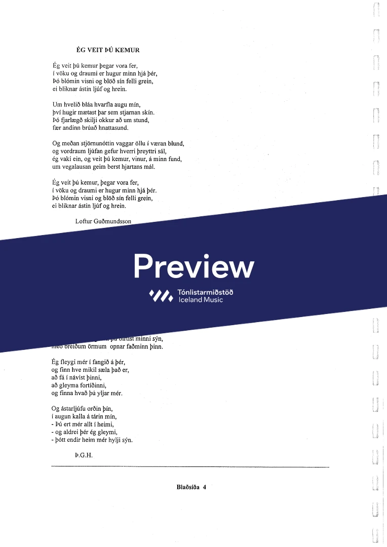 Composer Þórður G. Halldórsson Year composed- Categories Vocal music InstrumentationPiano, Voice Catalogue no.802-900 ISMN-
