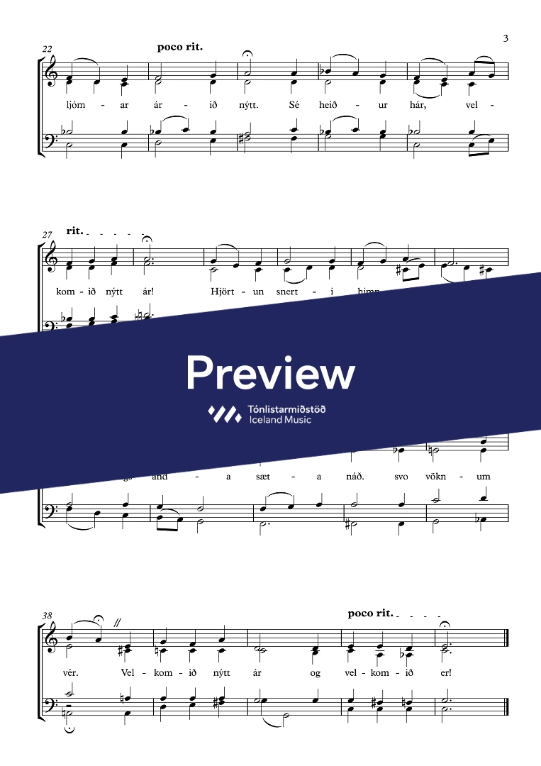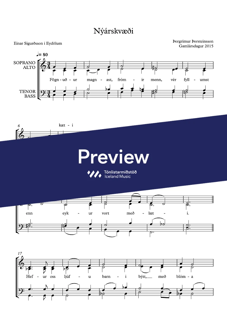 Text sampleFögnuður magnist, frómir menn, vér fyllunst allir kæti