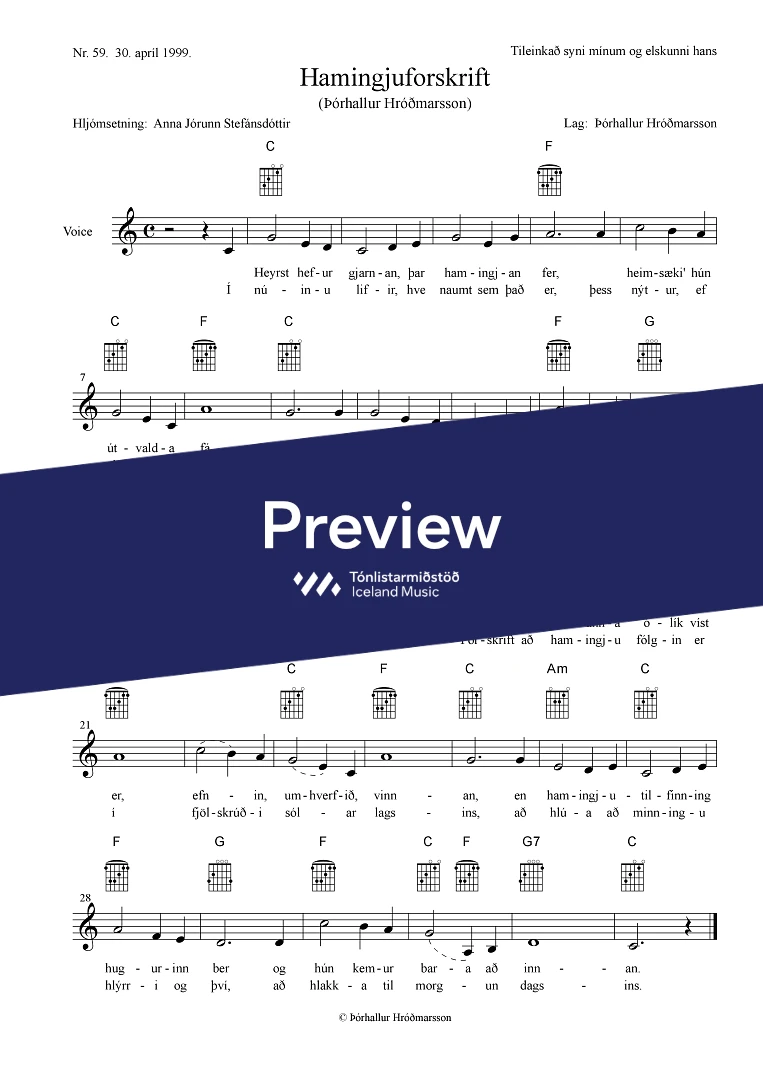 Text sampleHeyrst hefur gjarnan, þar hamingjan fer,