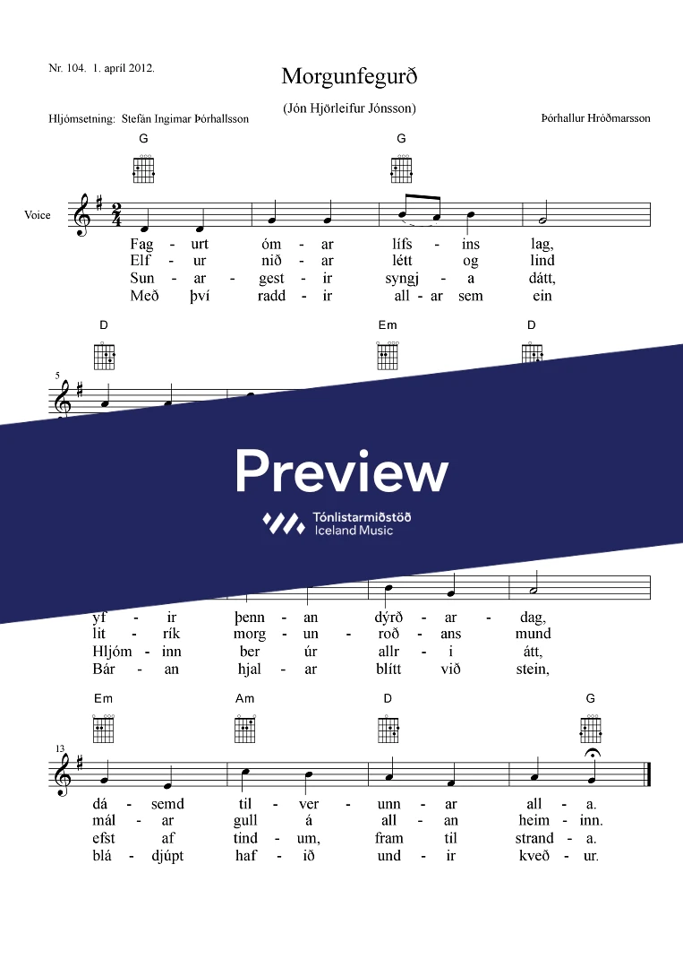 Text sampleFagurt ómar lífsins lag