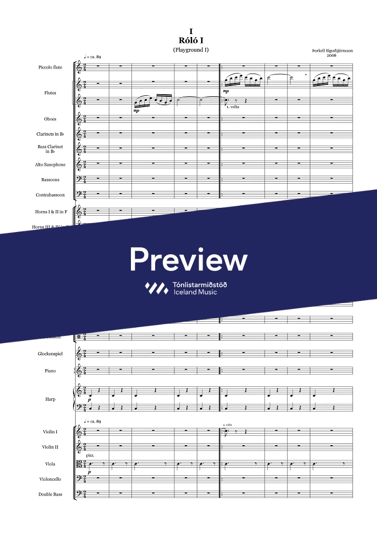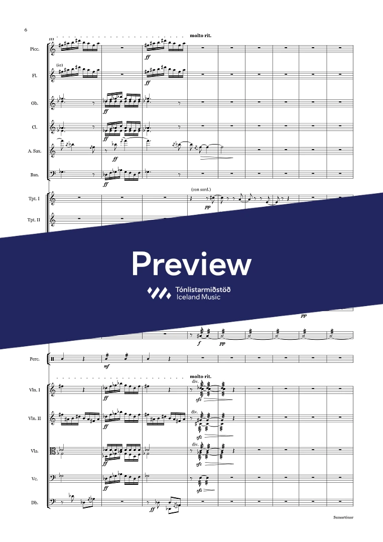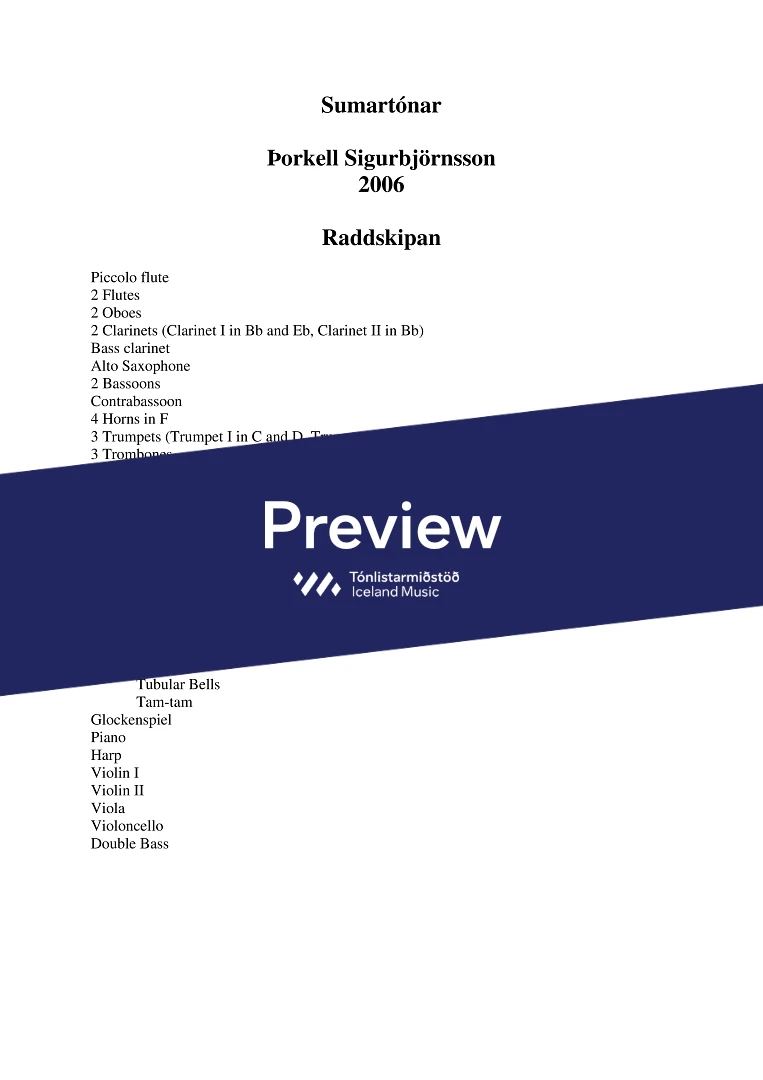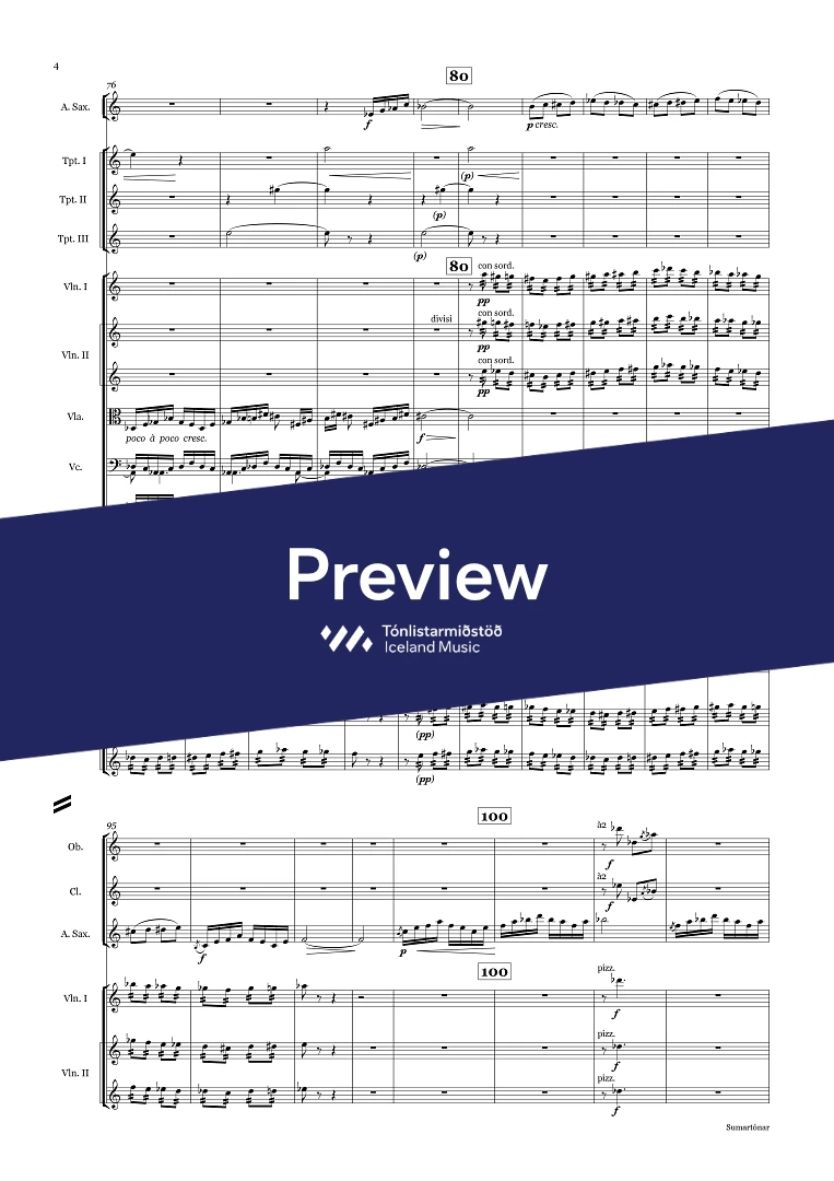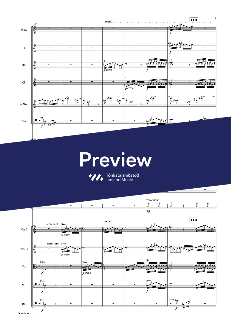 Instrumentation 3(picc)12(bcl)altsax2(cbn) - 4,3,3,1 - tmp. - perc. - pno. - hp. - str.