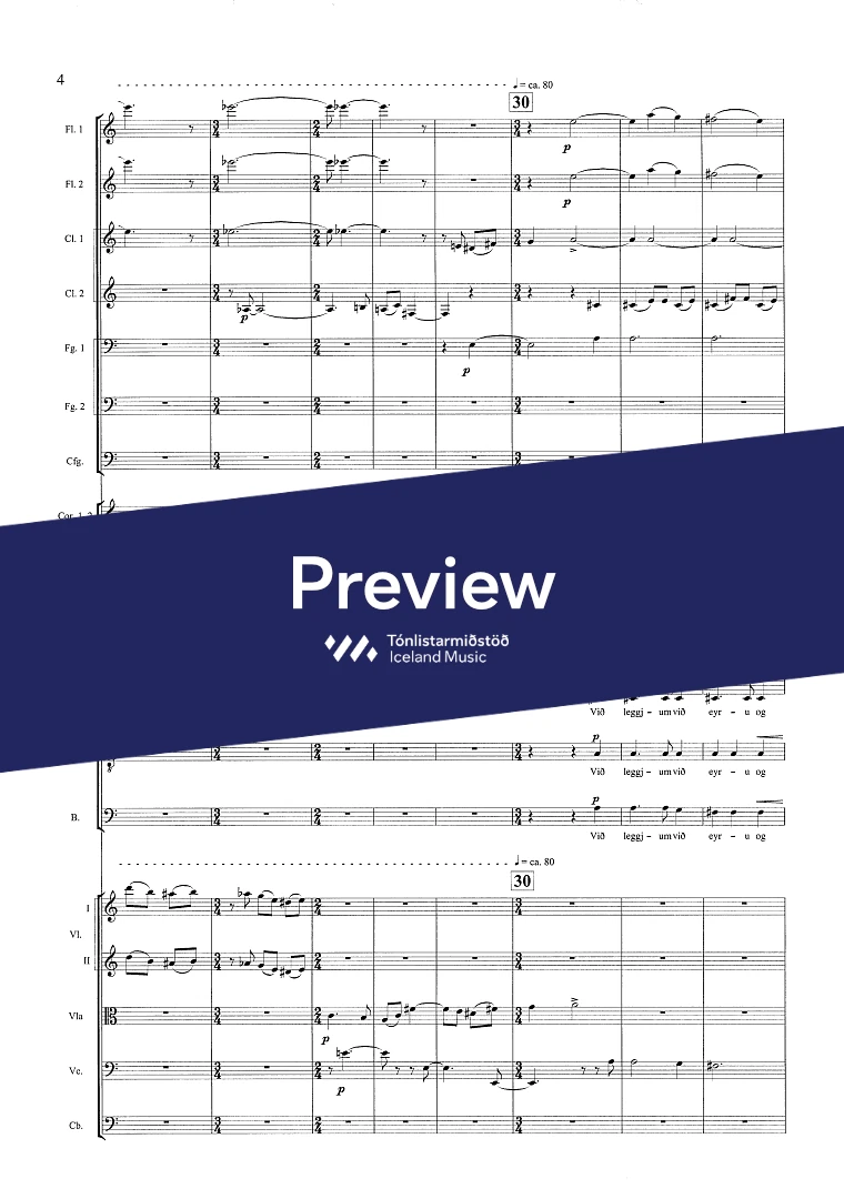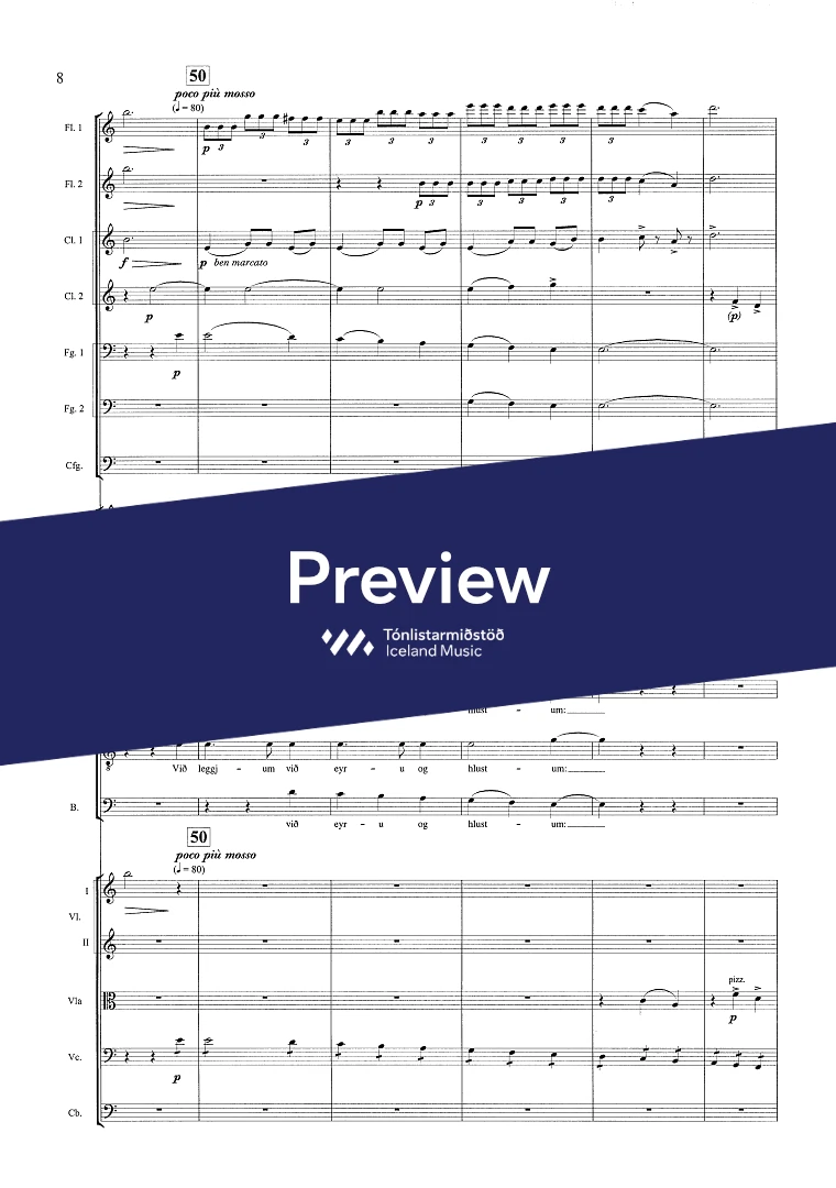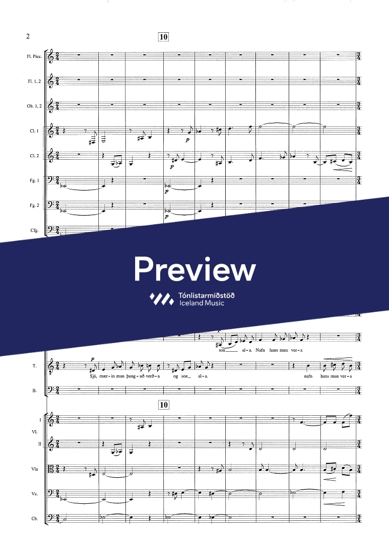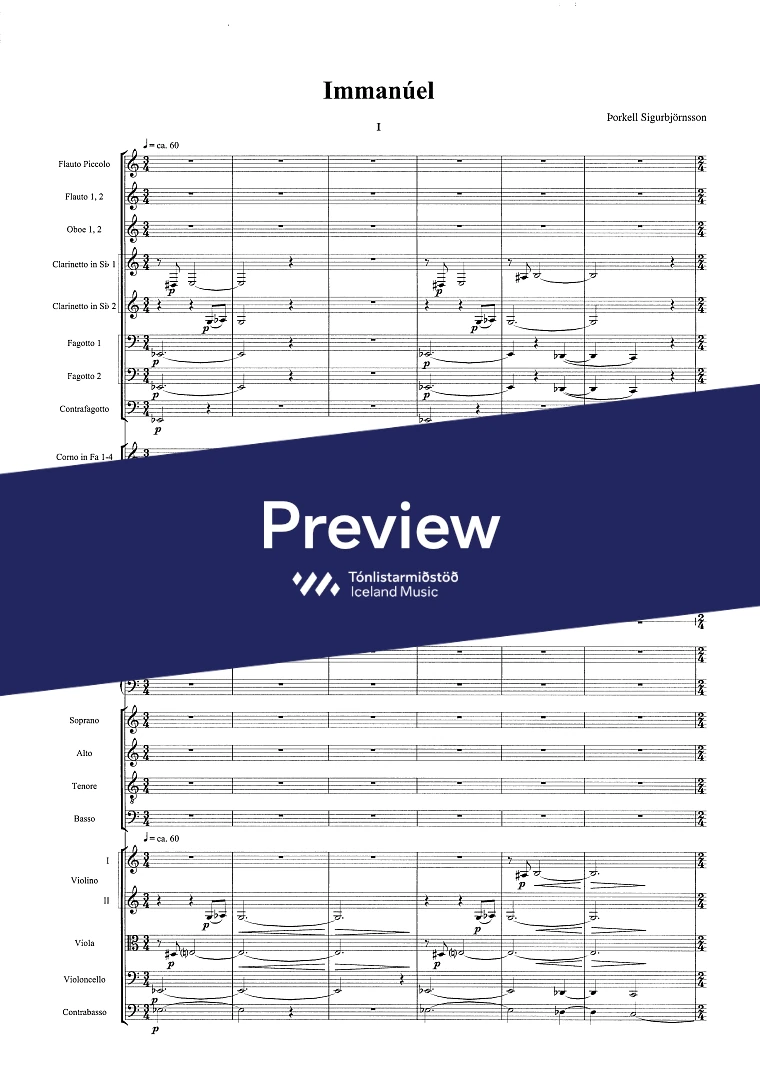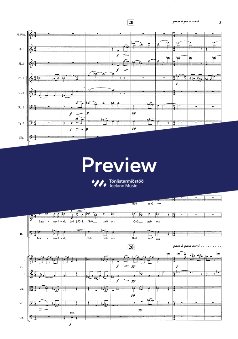 Instrumentation 3(picc.)2,2,3(cfag.) - 4,2,2,1 - tmp. - perc. - pno/cel. - SATB - sop. bar. - str.