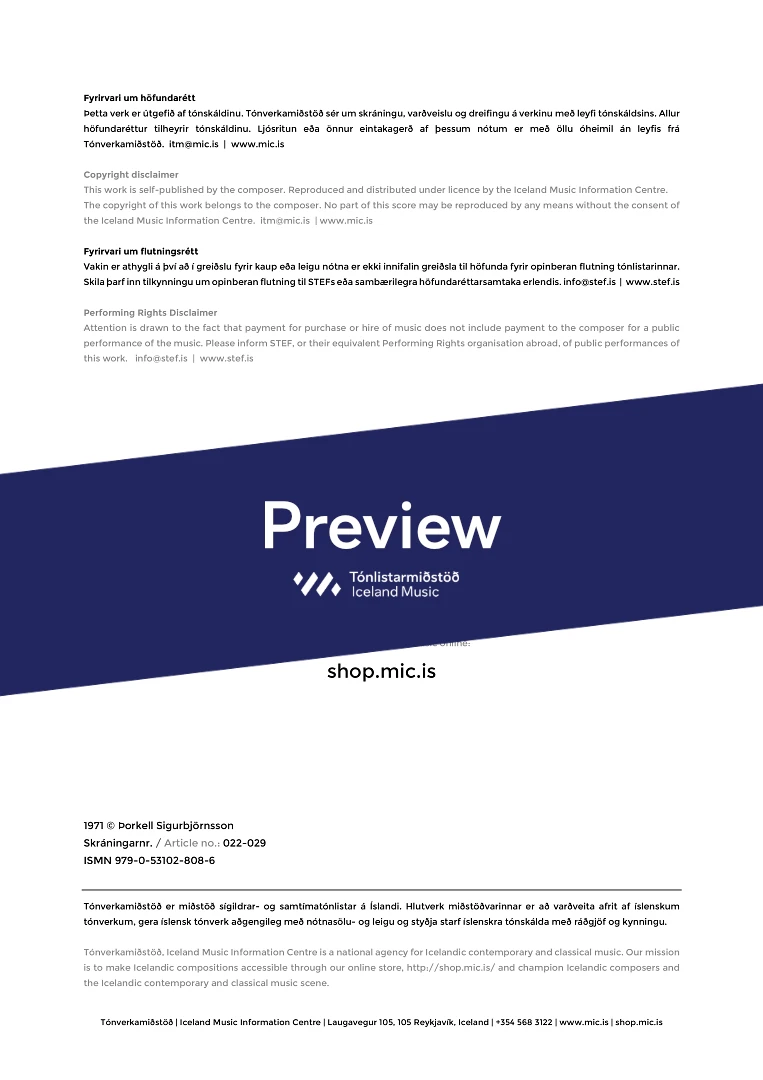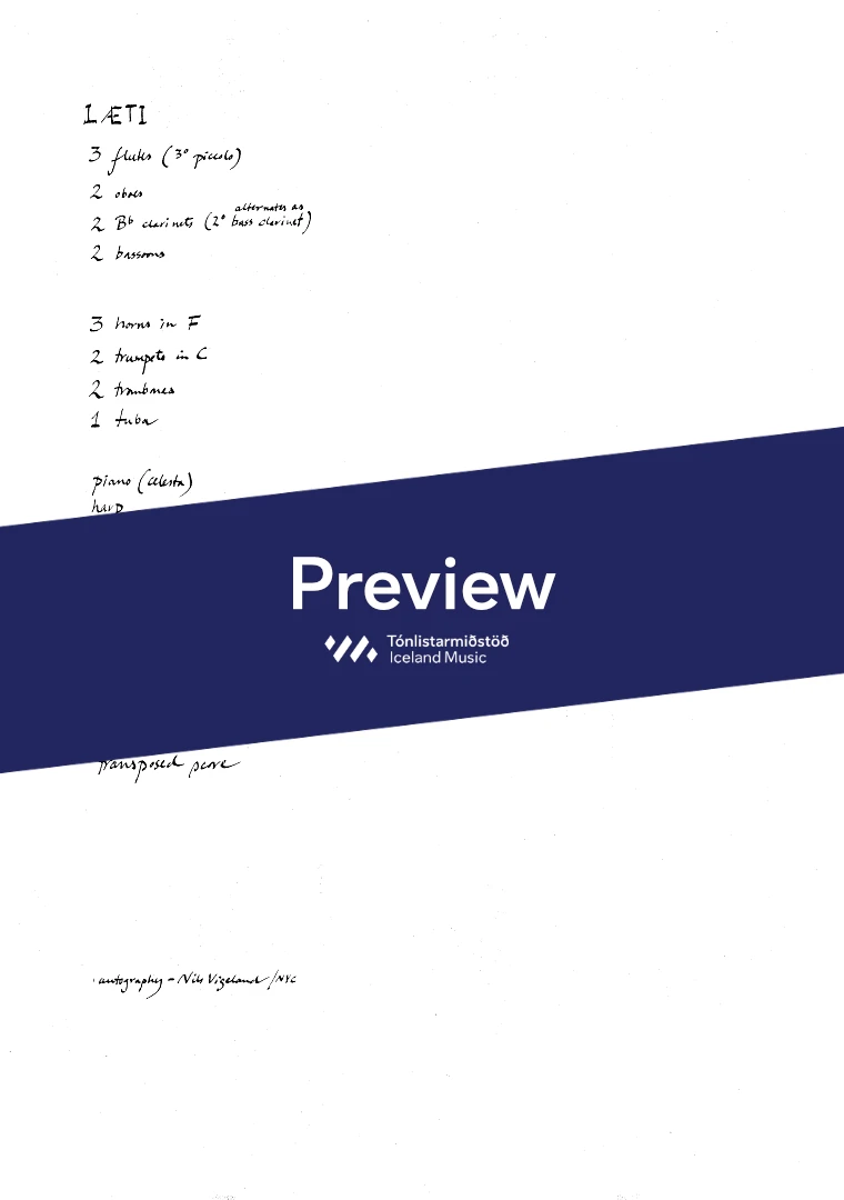 Instrumentation 3.2.2.2-3.2.2.1 - perc. - hp. - pno. - cel. - str. (Some parts prerec. on tape)