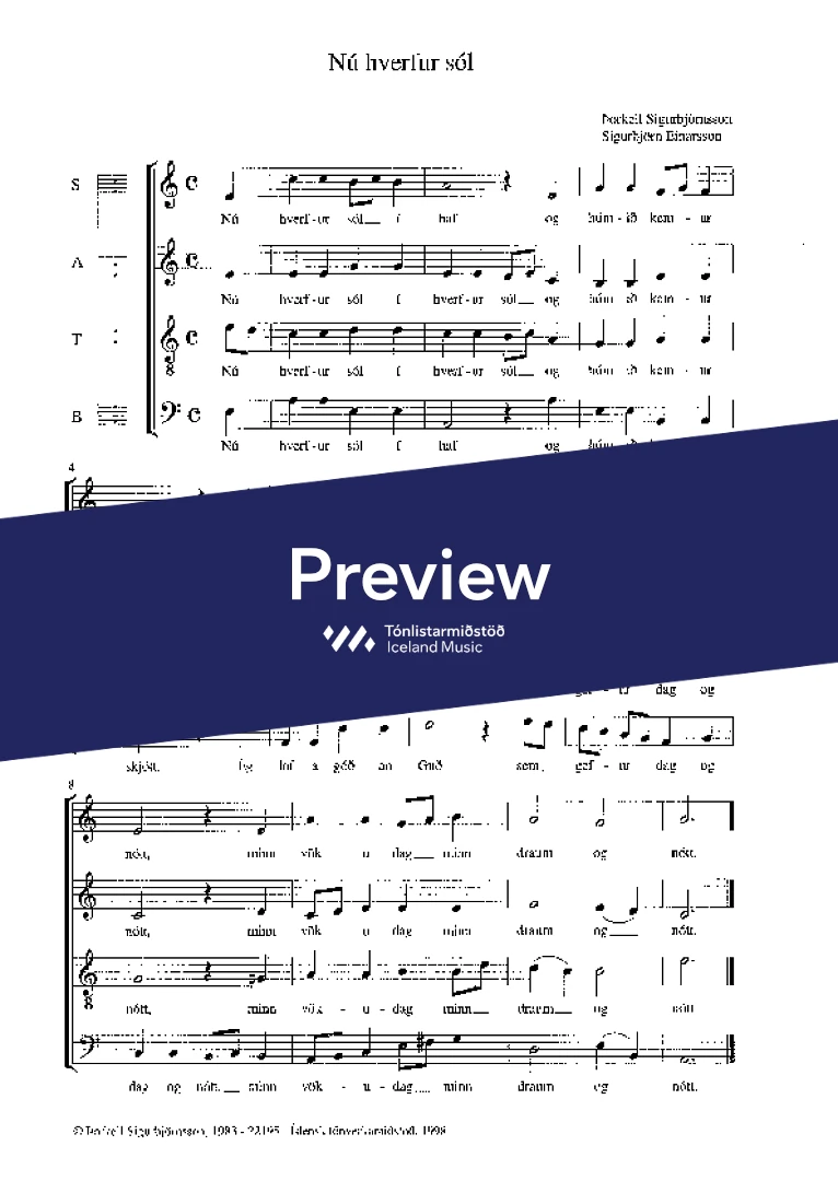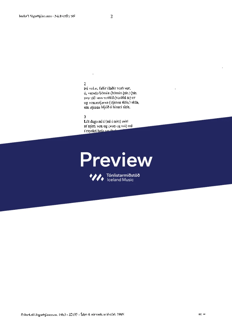 Text sampleNú hverfur sól í haf og húmið kemur skjótt