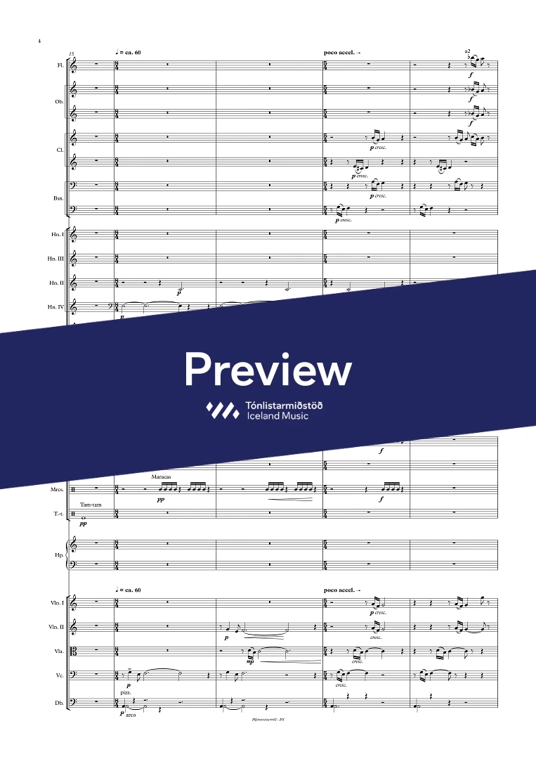 Instrumentation 2(picc.ad lib..).2.2.2 - 4.2.3.1 - perc(4) - cel. - hp. - str.