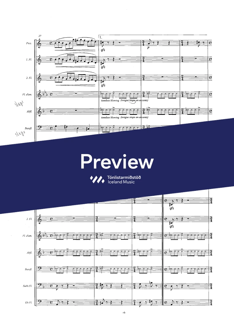 InstrumentationFlute, Piccolo Flute, Alto Flute, Bass Flute, Contrabass Flute