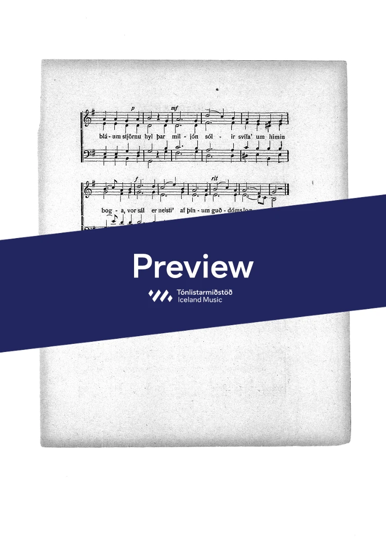 Composer Þorsteinn Sigurðsson Year composed1913 Categories Choral music, A cappella choir InstrumentationMixed choir Catalogue no.120-900 ISMN-