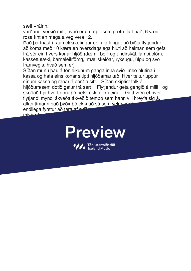 Composer Þórunn Björnsdóttir Year composed2013 Categories Sound installation Duration10 minutes Catalogue no.865-001 ISMN-