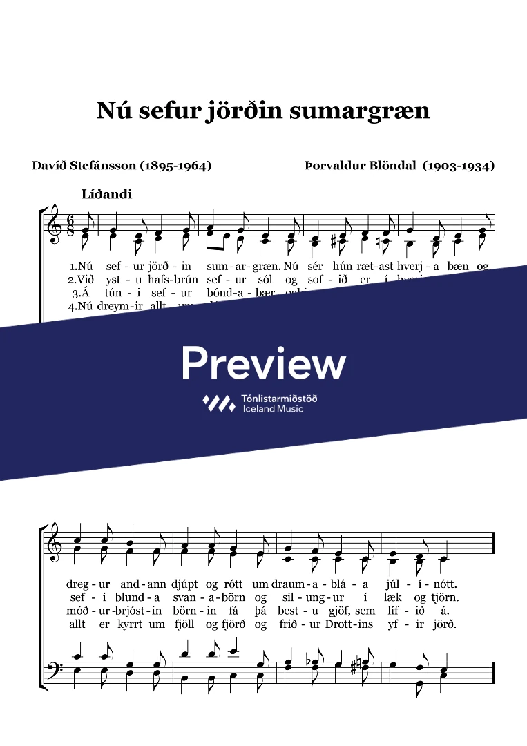 Composer Þorvaldur Blöndal Author Davíð Stefánsson Year composed- Categories A cappella choir Catalogue no.118-001 ISMN979-0-53102-218-3