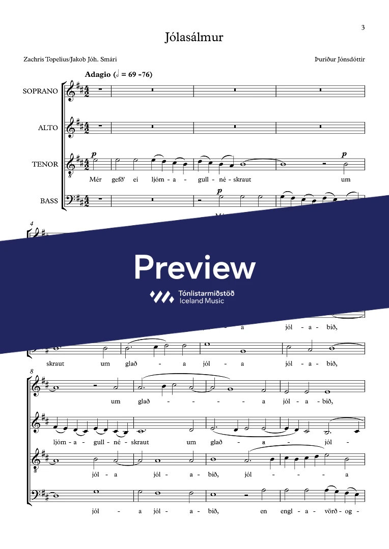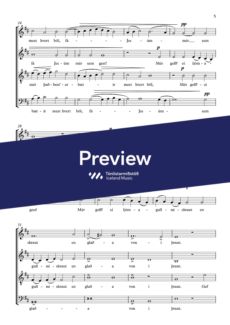 Text sampleMer gefð' ei ljóma, gull né skraut