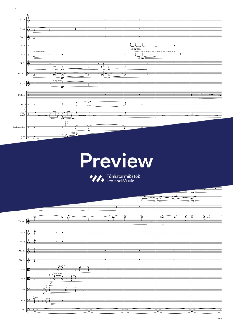 Instrumentation 3(1,2,3 picc.).2(C.A.).3(B.cl.).3(Cbsn) - 4.2.3(Btbn) - 4 perc - hp - pf - strings