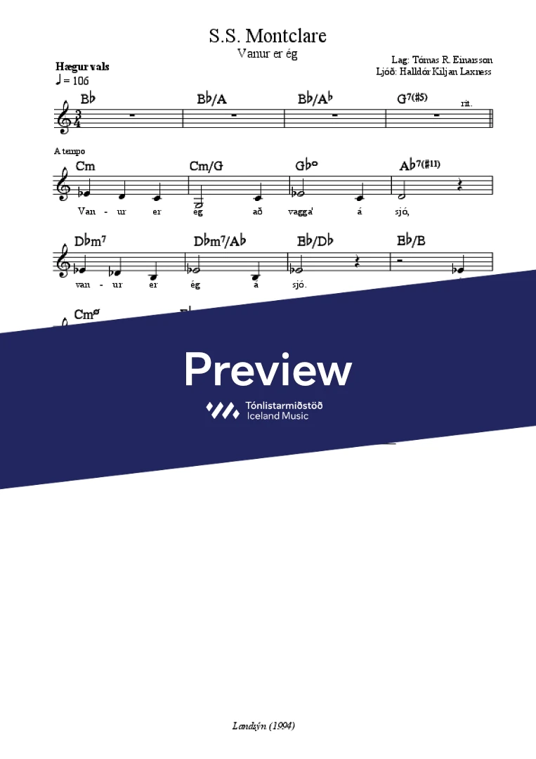 Text sampleVanur er ég að vagga á sjó