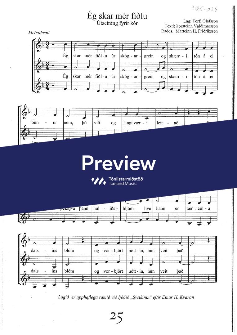 Text sampleÉg skar mér fiðlu úr skógargrein