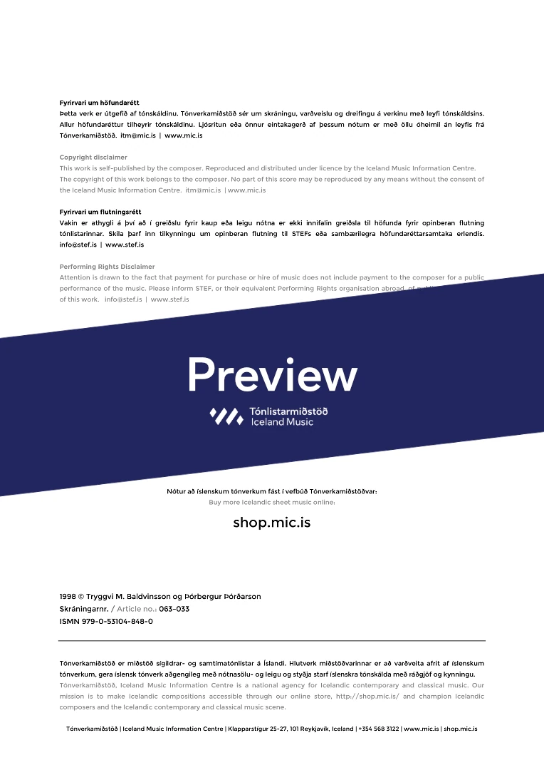 2(picc.) 2(c-ang.) 2(Eb-cl. Bcl.) 2(Cbn) - 4,3,3,1 - tmp. - perc.(2) - hp. - narr. - str.