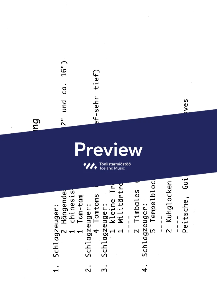 2(picc.) 2(c-ang.) 2(Eb-cl. Bcl.) 2(Cbn) - 4,3,3,1 - tmp. - perc.(2) - hp. - narr. - str.
