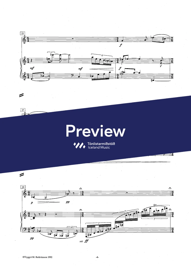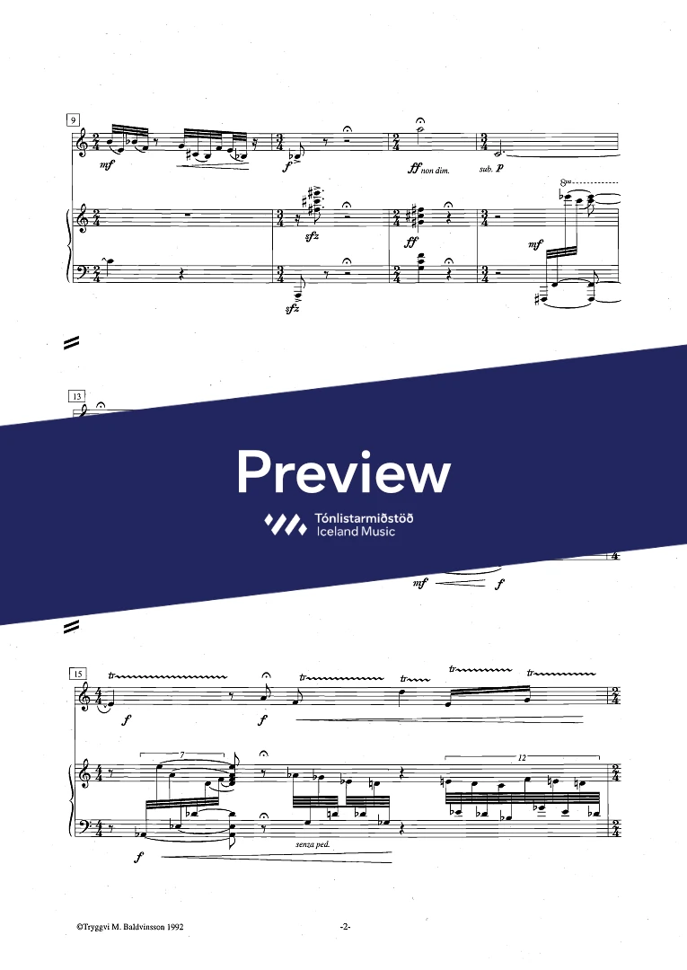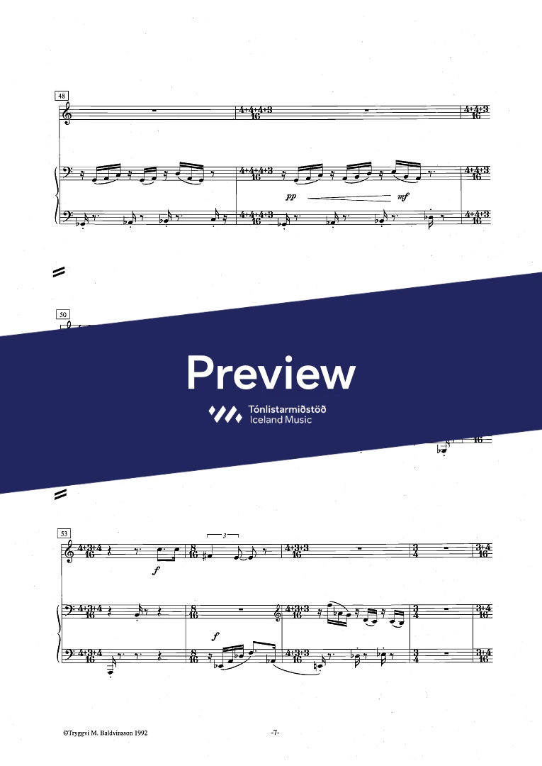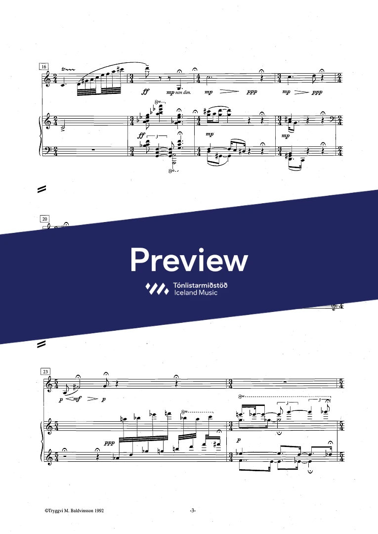 2(picc.) 2(c-ang.) 2(Eb-cl. Bcl.) 2(Cbn) - 4,3,3,1 - tmp. - perc.(2) - hp. - narr. - str.