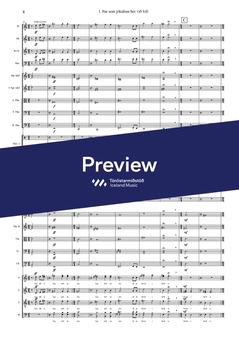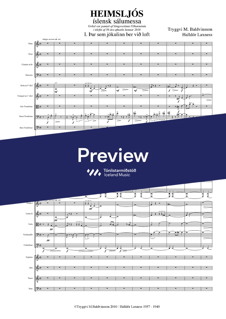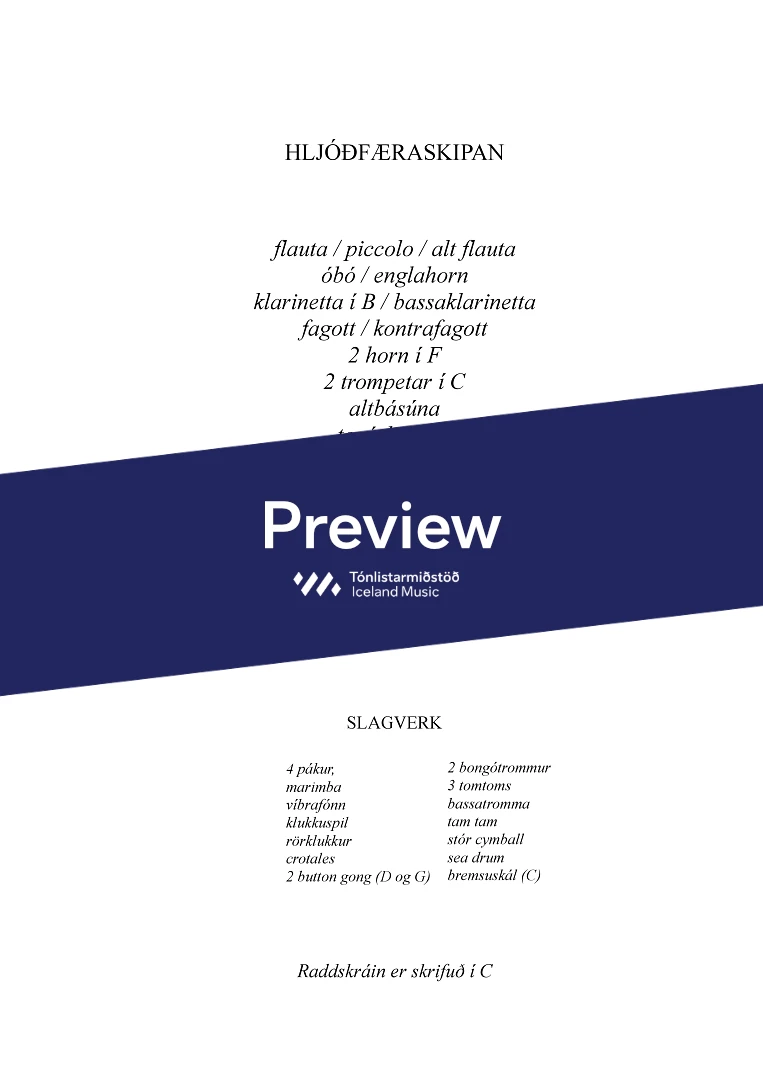 2(picc.) 2(c-ang.) 2(Eb-cl. Bcl.) 2(Cbn) - 4,3,3,1 - tmp. - perc.(2) - hp. - narr. - str.