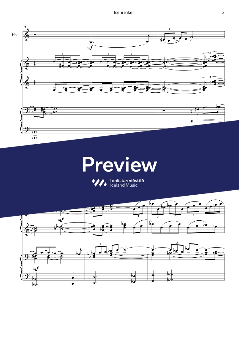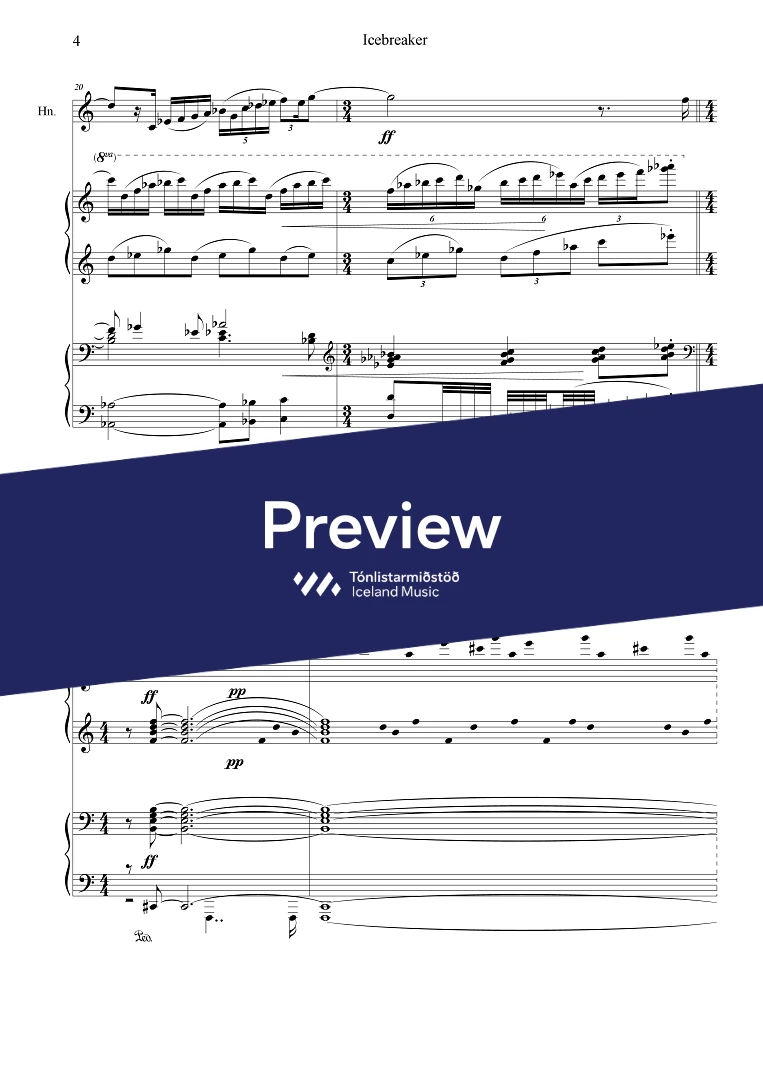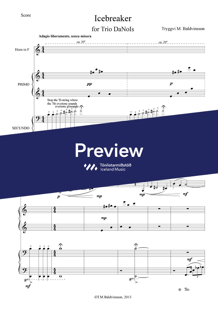 2(picc.) 2(c-ang.) 2(Eb-cl. Bcl.) 2(Cbn) - 4,3,3,1 - tmp. - perc.(2) - hp. - narr. - str.