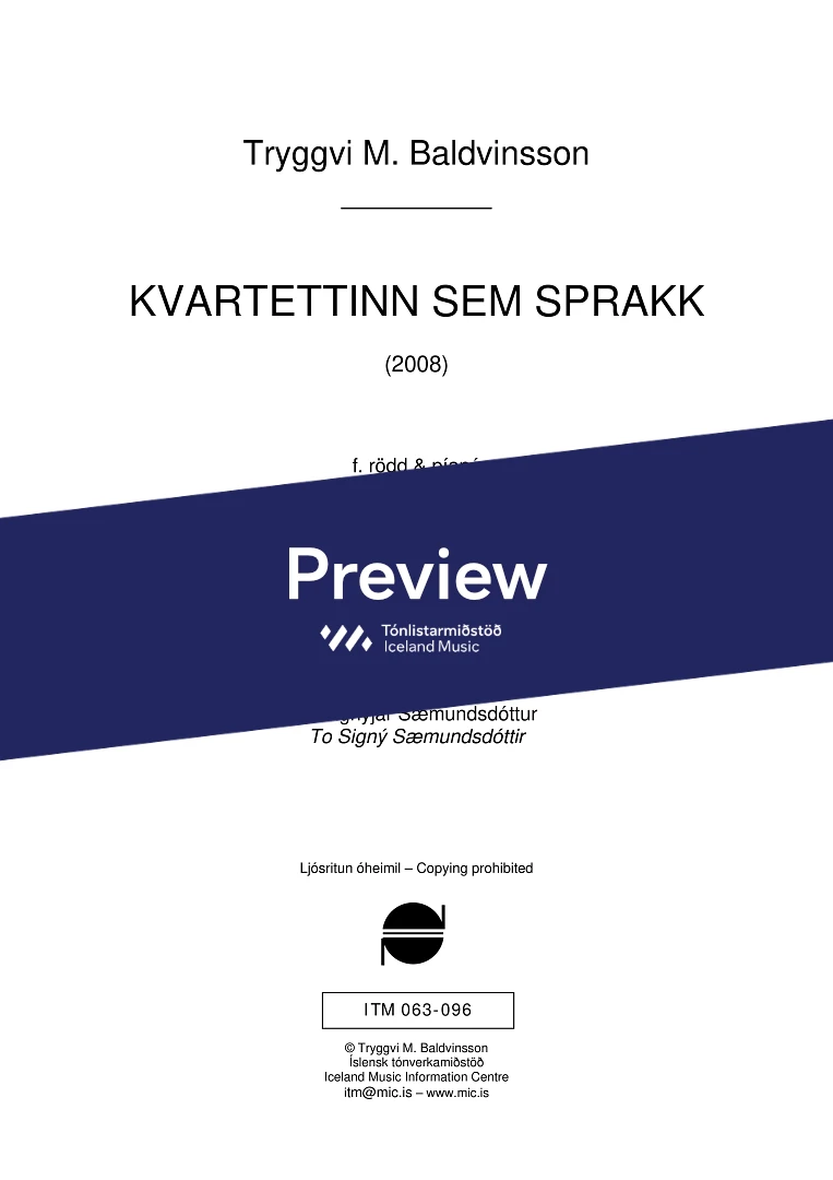 2(picc.) 2(c-ang.) 2(Eb-cl. Bcl.) 2(Cbn) - 4,3,3,1 - tmp. - perc.(2) - hp. - narr. - str.
