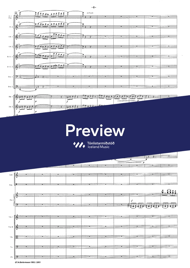 2(picc.) 2(c-ang.) 2(Eb-cl. Bcl.) 2(Cbn) - 4,3,3,1 - tmp. - perc.(2) - hp. - narr. - str.