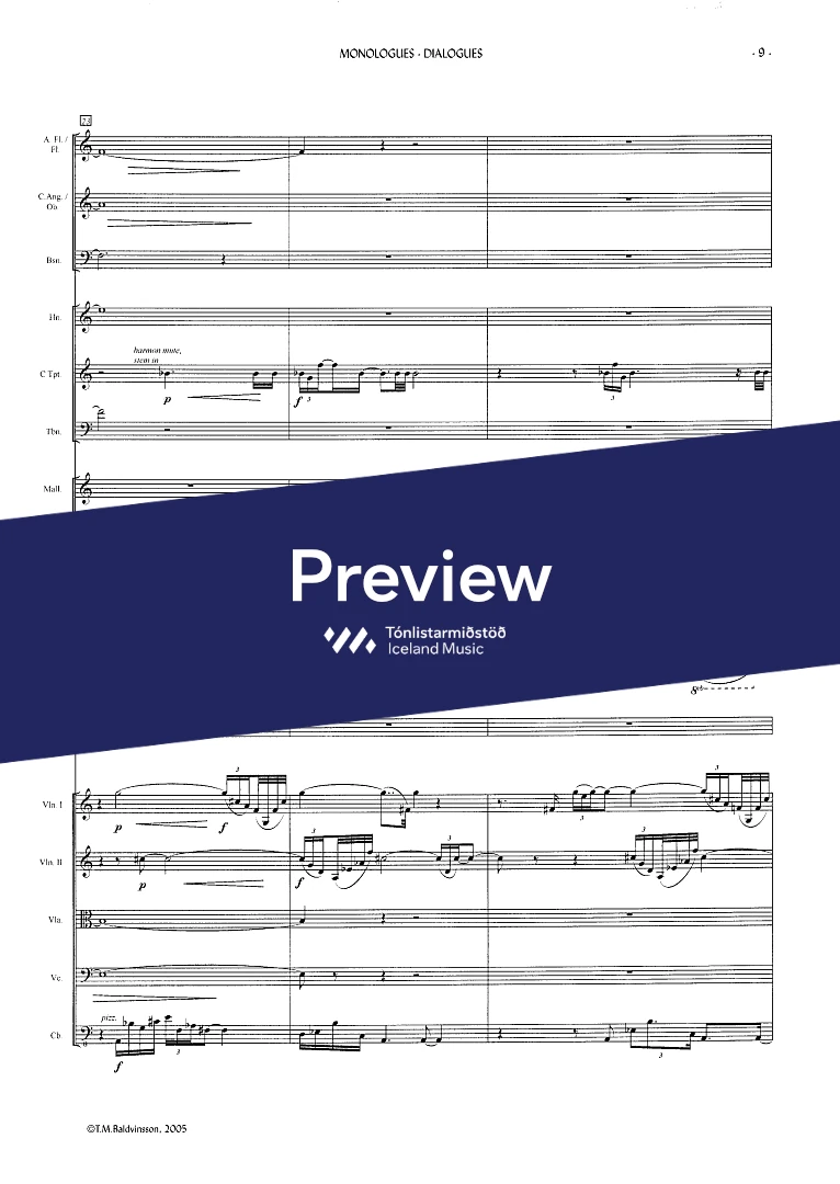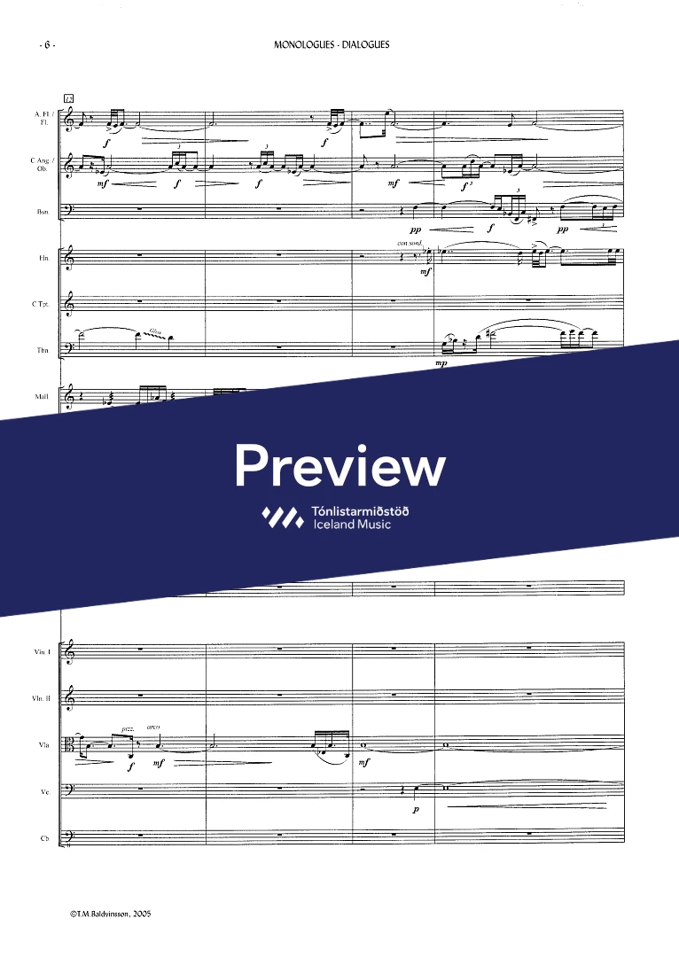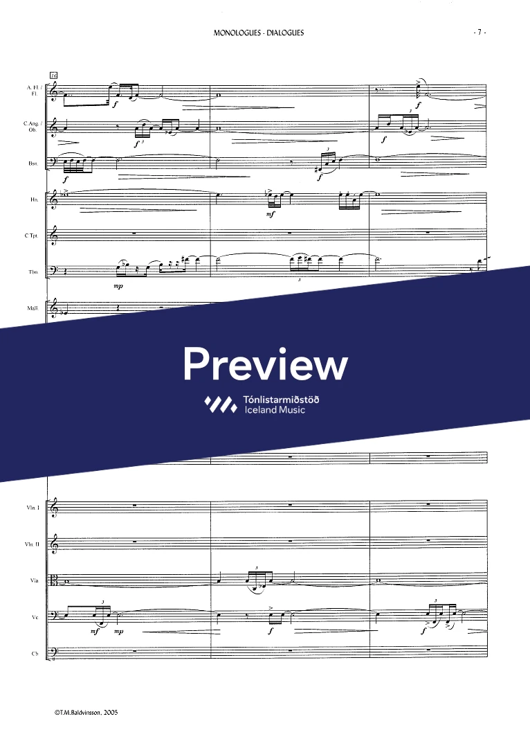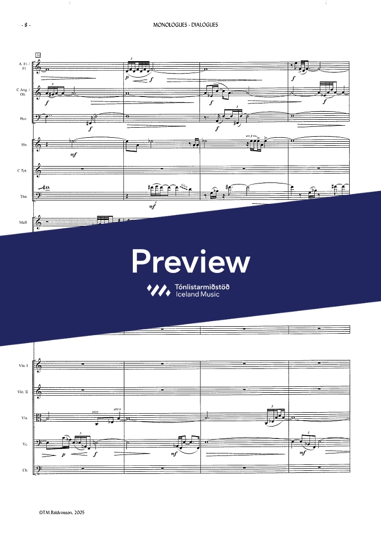 2(picc.) 2(c-ang.) 2(Eb-cl. Bcl.) 2(Cbn) - 4,3,3,1 - tmp. - perc.(2) - hp. - narr. - str.