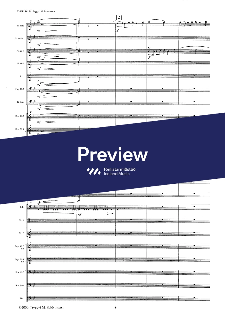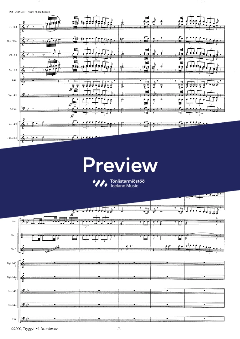 2(picc.) 2(c-ang.) 2(Eb-cl. Bcl.) 2(Cbn) - 4,3,3,1 - tmp. - perc.(2) - hp. - narr. - str.