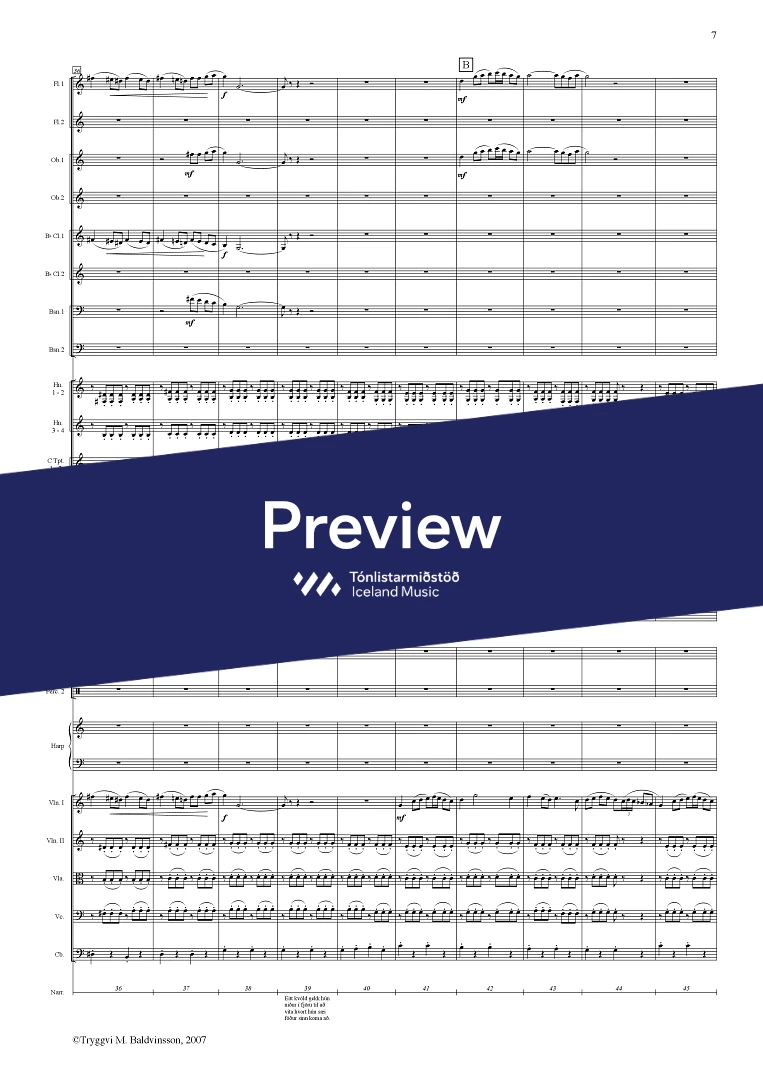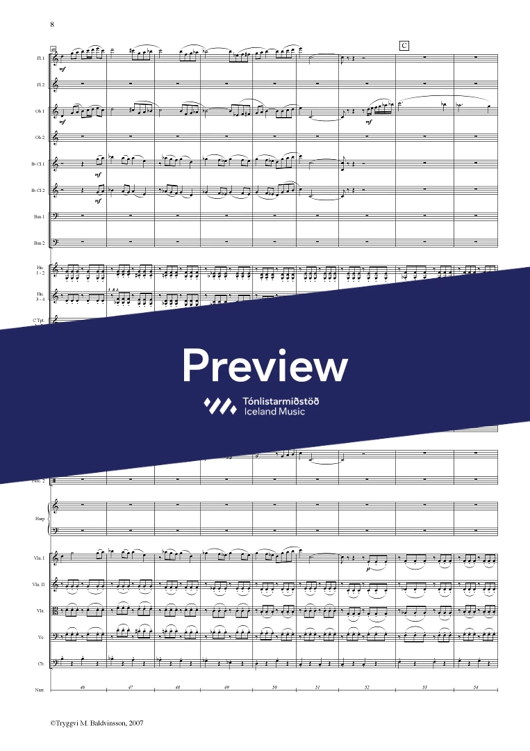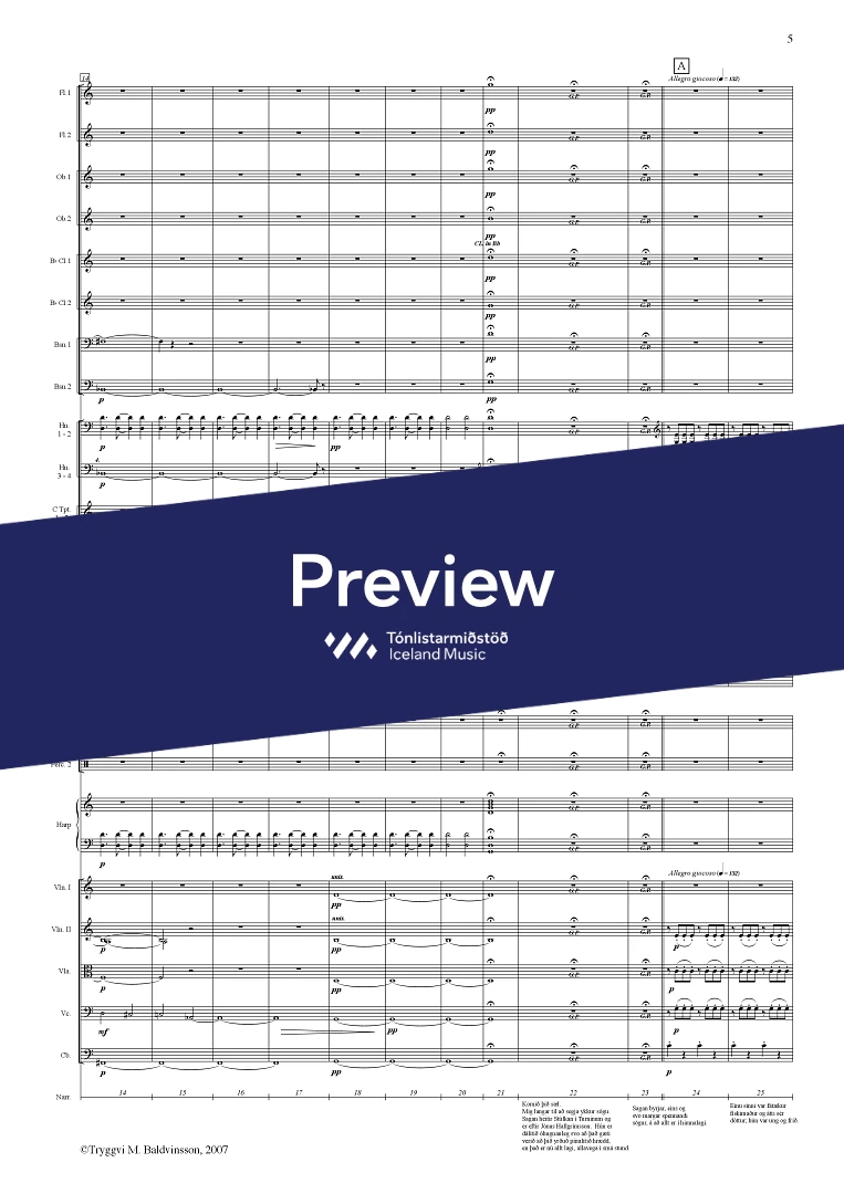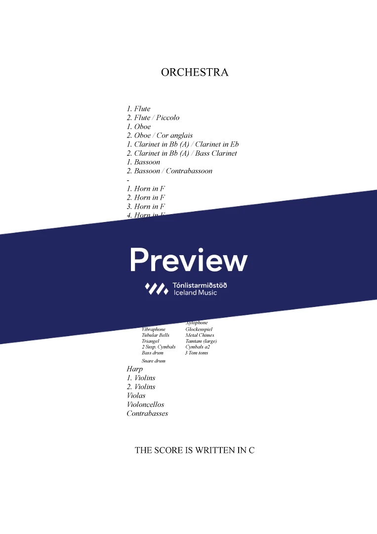 Instrumentation 2(picc.) 2(c-ang.) 2(Eb-cl. Bcl.) 2(Cbn) - 4,3,3,1 - tmp. - perc.(2) - hp. - narr. - str.