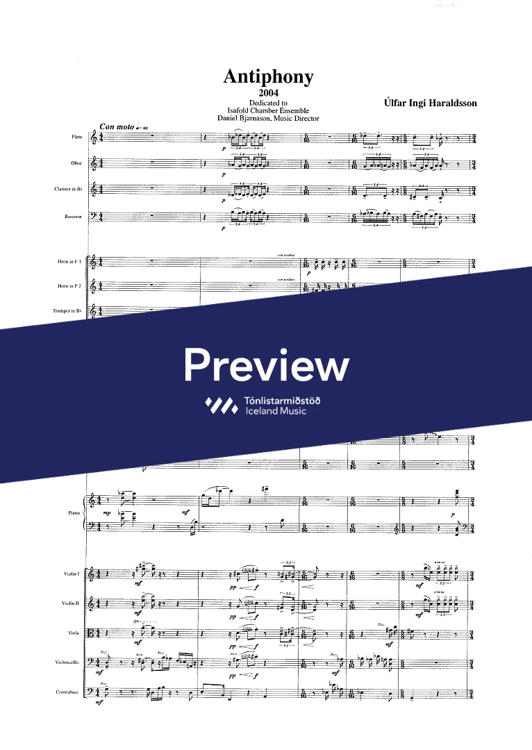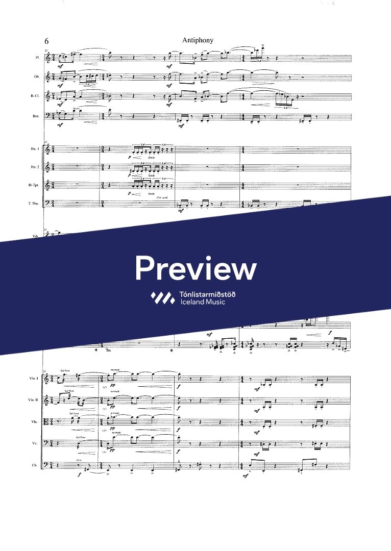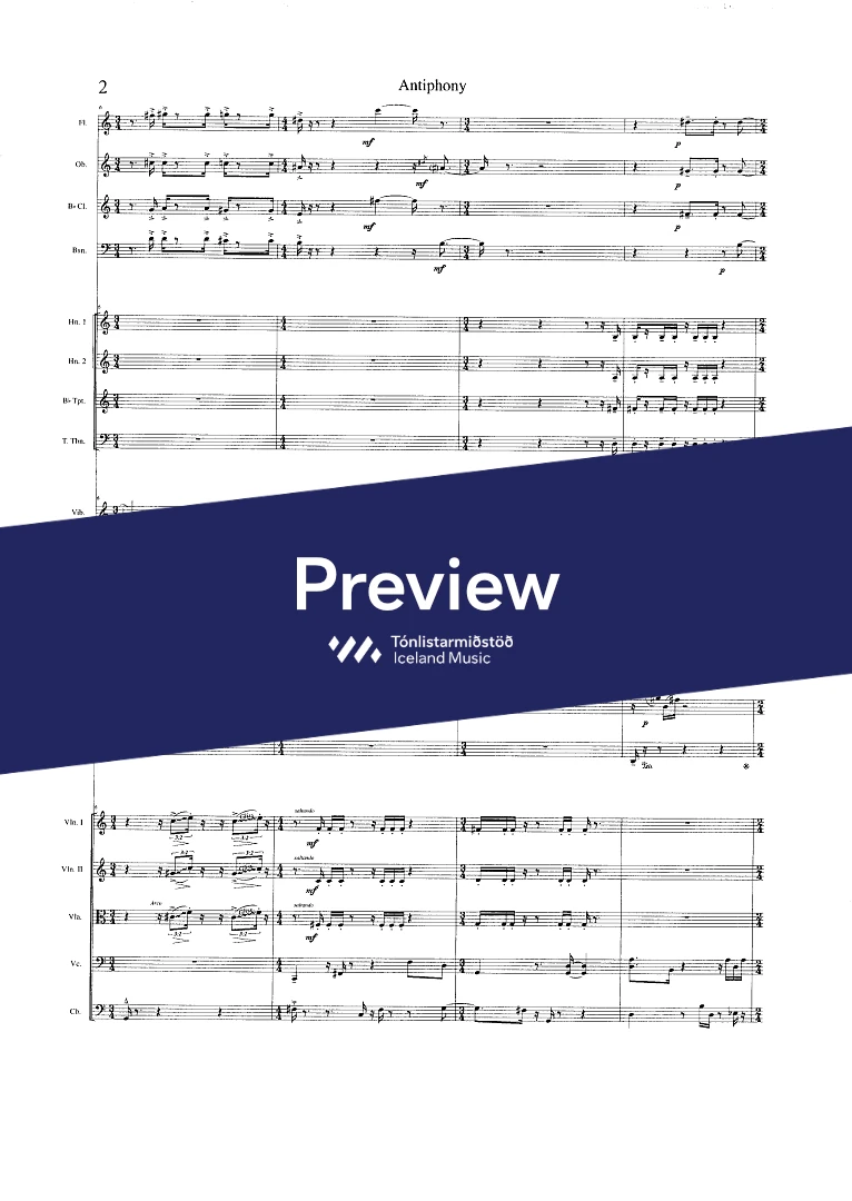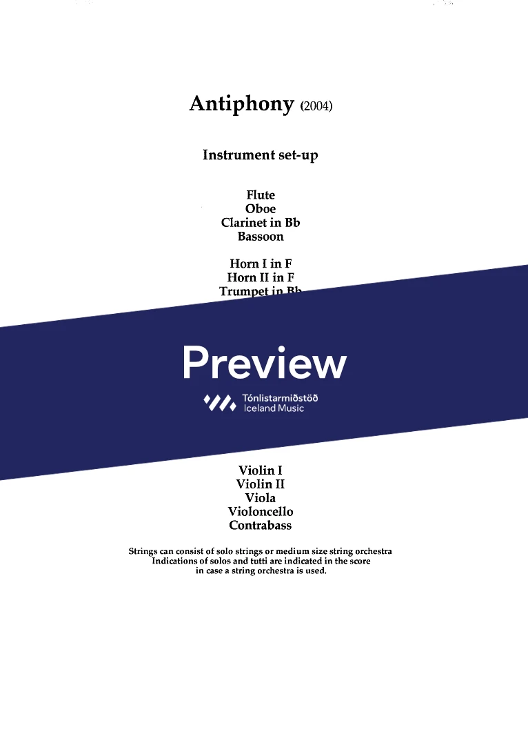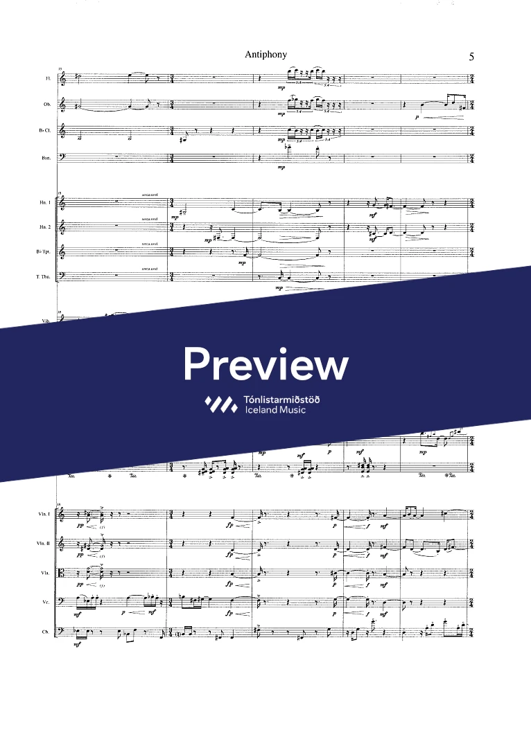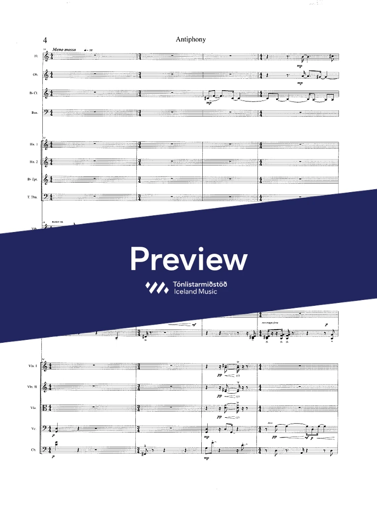 2fl. 2ob. 2cl. 2bsn. 2hrn. 2tpt. 2tbn. tba. tmp. perc. str.