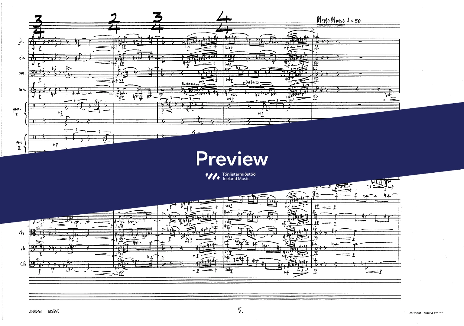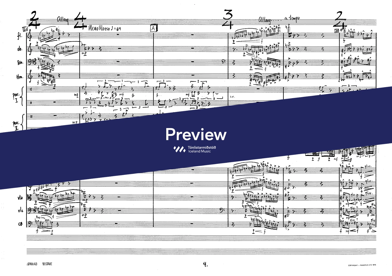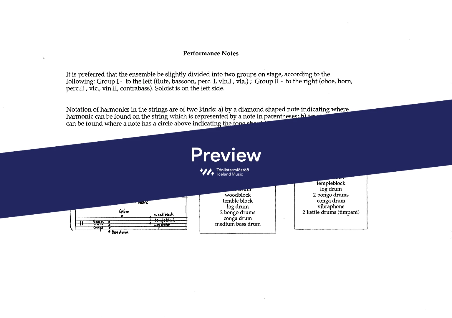 InstrumentationFlute, Oboe, Clarinets, Bassoon, French Horn, Percussion, Snare drum, Vibraphone, Bells, Violin, Viola, Cello, Double Bass